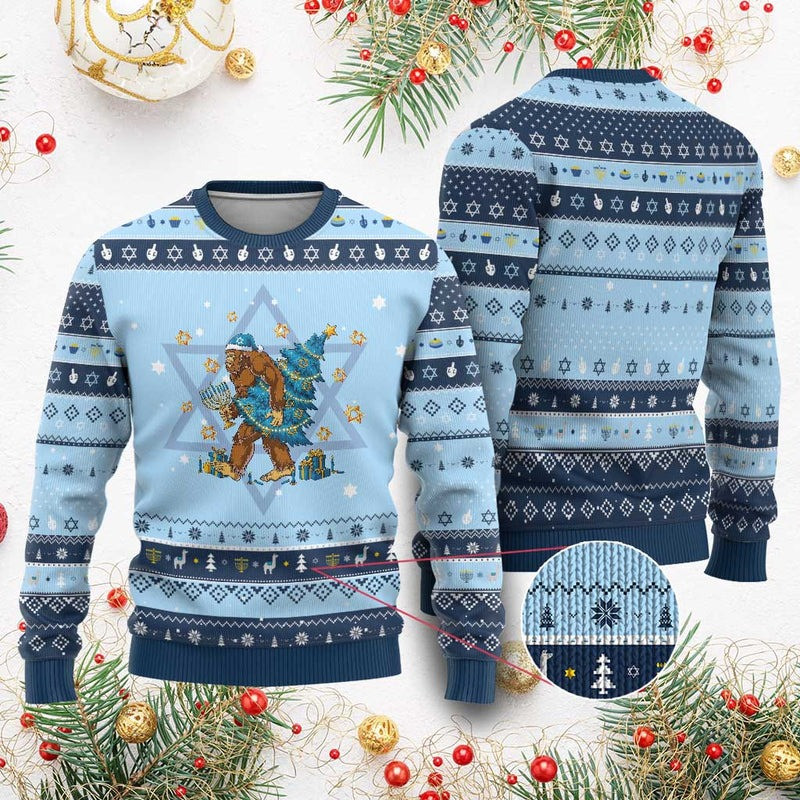 Rushgleam Bigfoot Jewish Holiday Ugly Christmas Sweater Hanukkah Gift For Bigfoot Lover