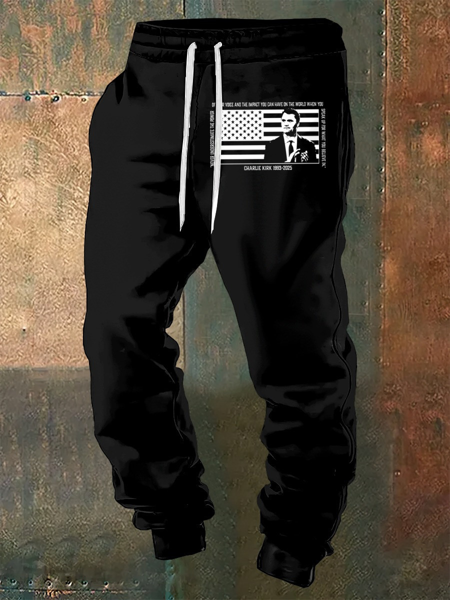 Rushgleam Men’s Charlie Kirk Printed Drawstring Pants