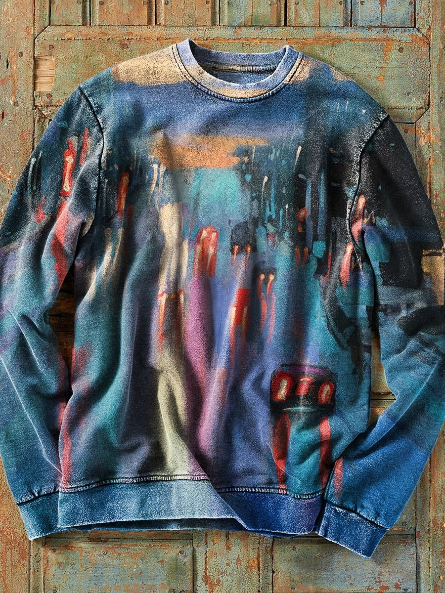 Abstract Street Car Watercolor Sweatshirt Watercolor Art Xmas Clothing Holiday Gifts For Him