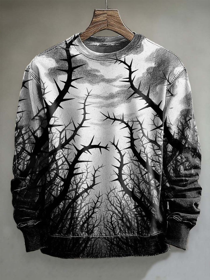 Abstract Thorn Halloween Sweatshirt Gothic Apparel Monochrome Gifts For Gothic Lovers