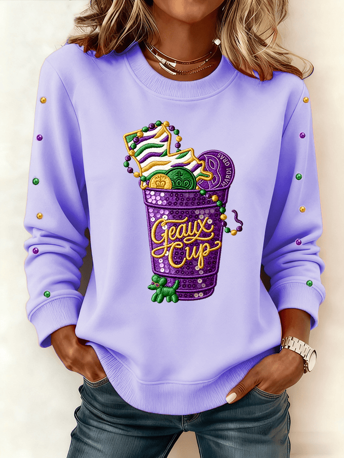 Geaux Cup Mardi Gras Sweatshirt Purple Carnival Graphic Shirt Gift for Wife