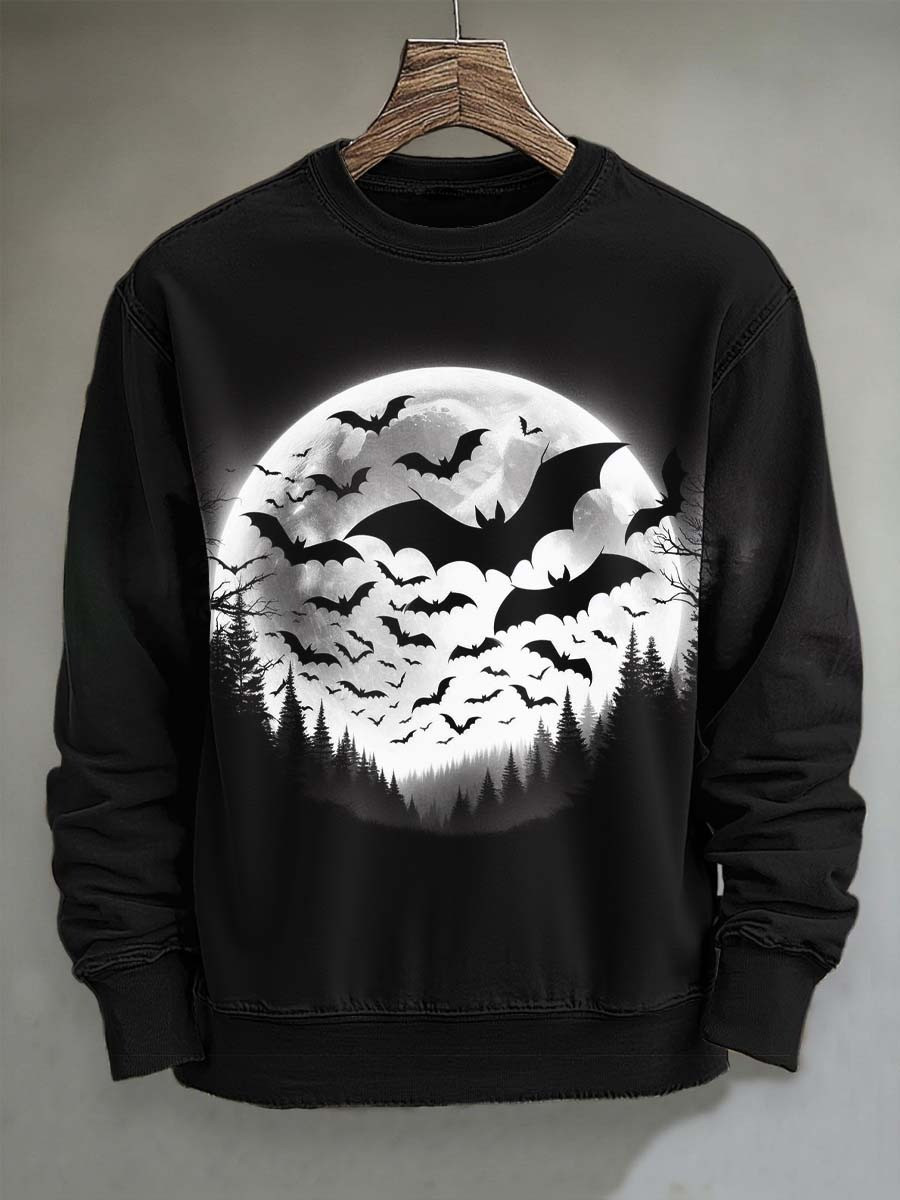 Bat Print Halloween Sweatshirt Gothic Apparel Best Xmas Presents For Bat Lovers