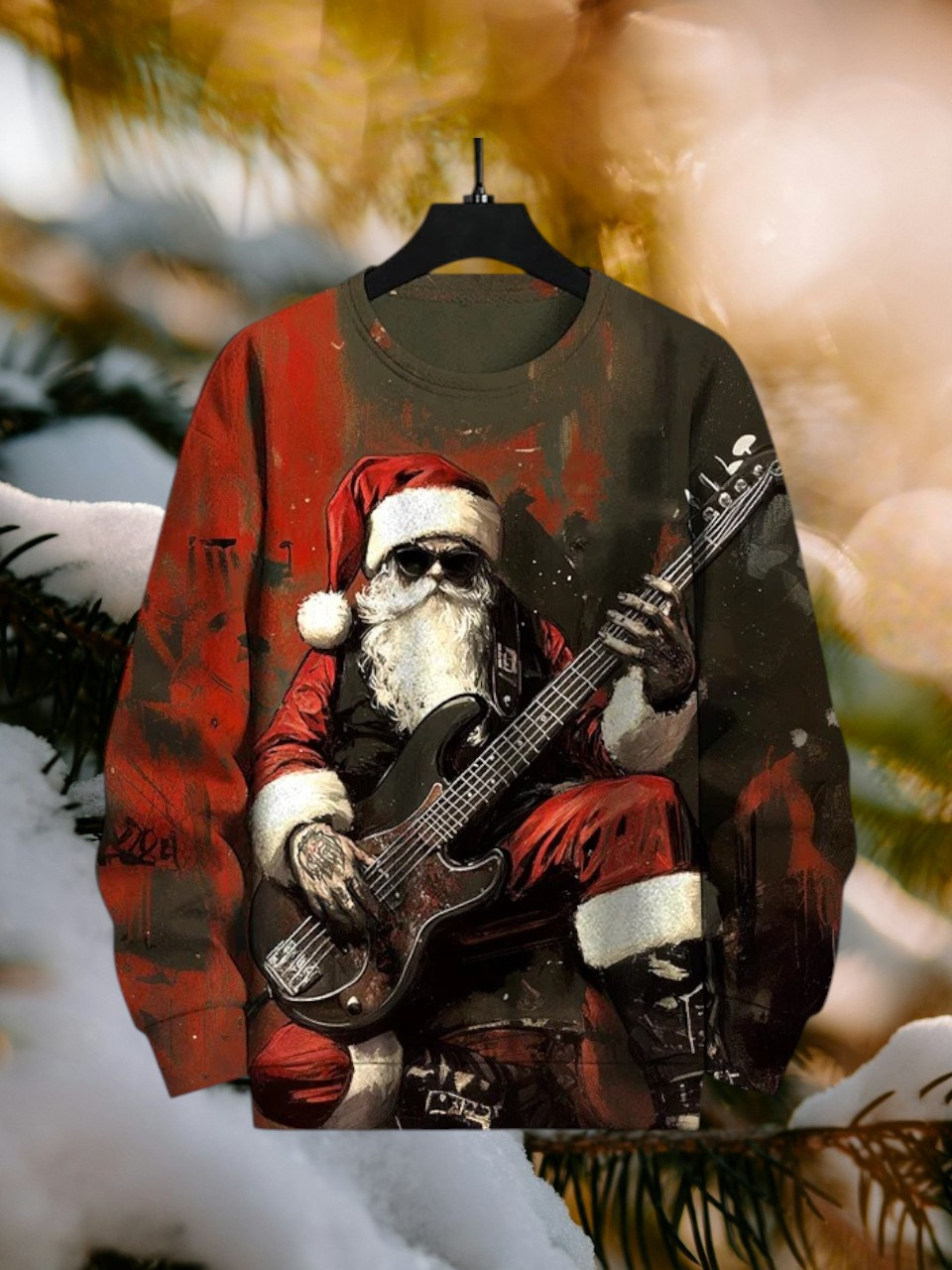Rock Santa Playing Bass Guitar Christmas Holiday Sweatshirt Music Presents For Guitar Lovers
