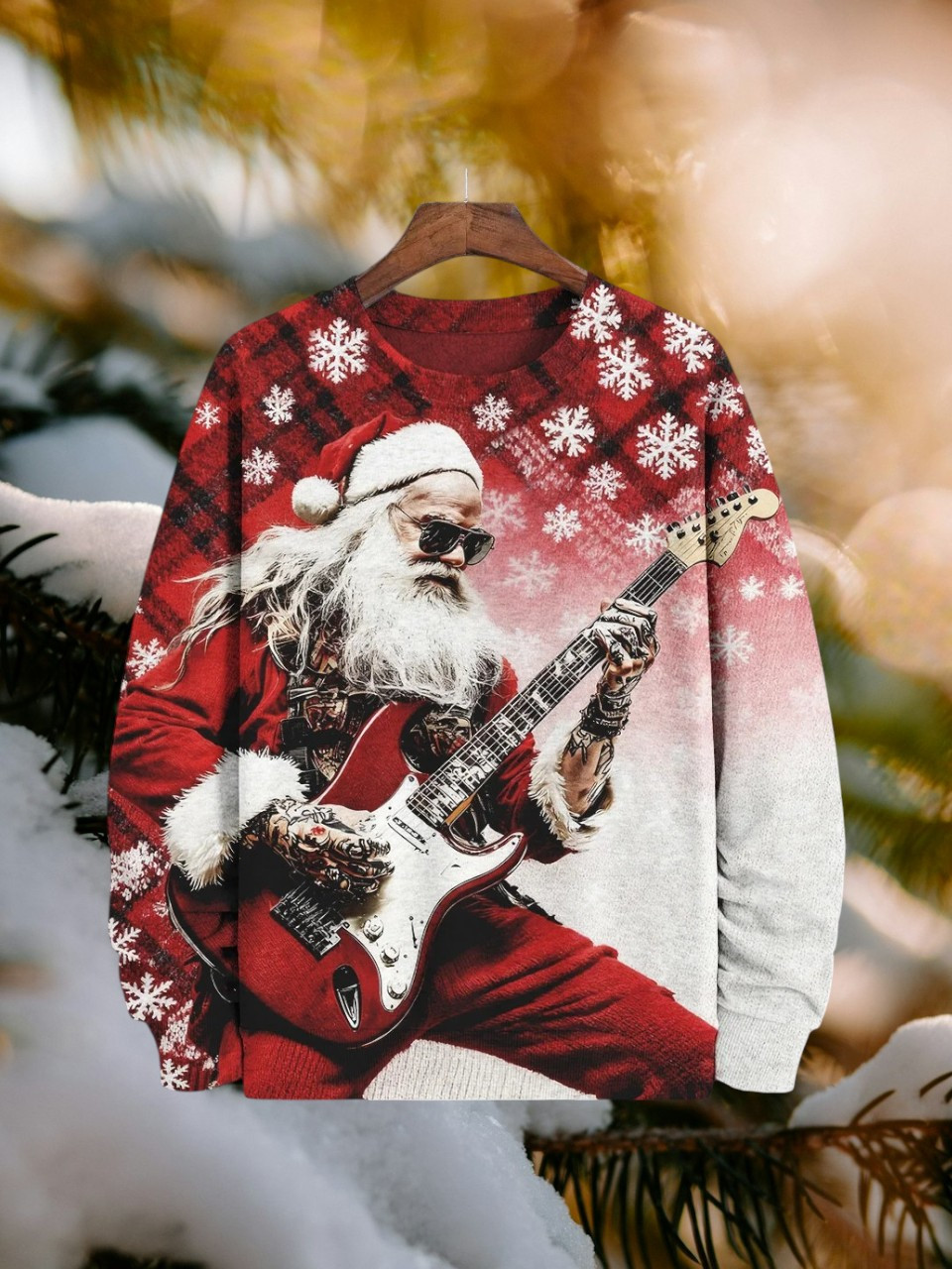 Rock Santa Playing Guitar Christmas Holiday Sweatshirt Music Gifts For Guitar Players