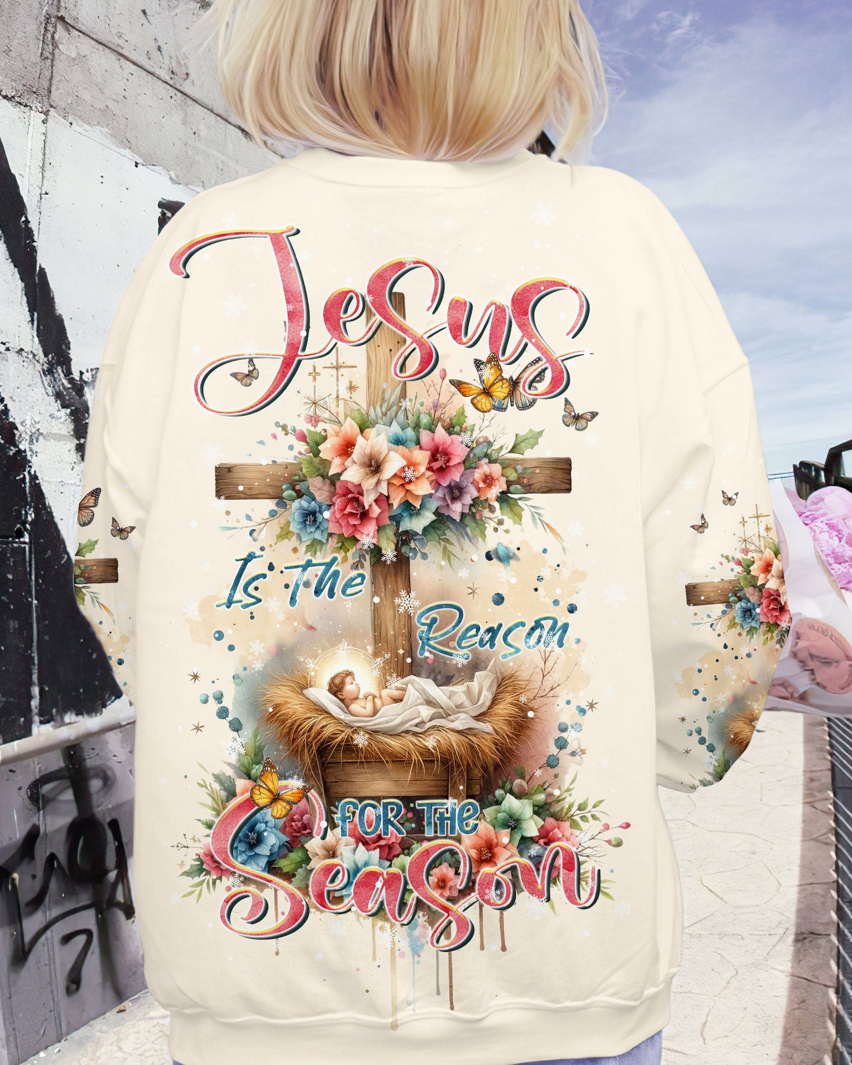Rushgleam Baby Jesus Is The Reason Christmas Sweatshirt Cozy Festive Pullover Christian Themed Gifts
