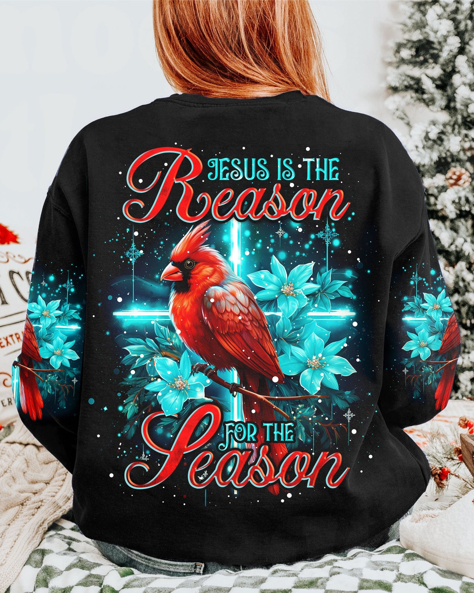 Rushgleam Cardinal Jesus Is The Reason Christmas Sweatshirt Winter Cardinal Apparel Catholic Gifts