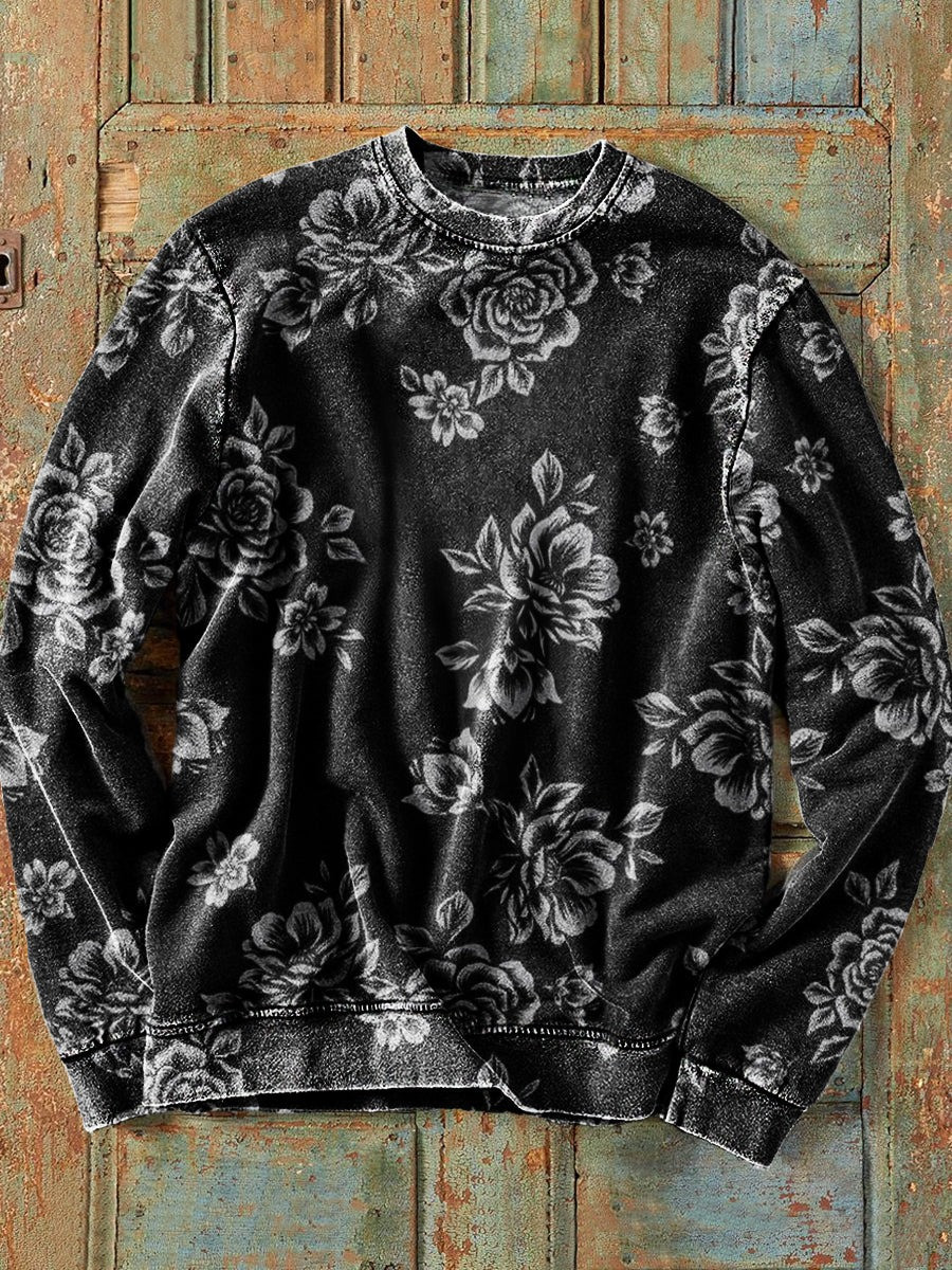 Black And White Floral Sweatshirt Art Xmas Clothing Holiday Merch Gifts For Rose Lovers