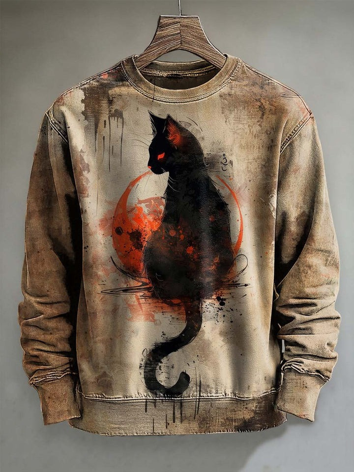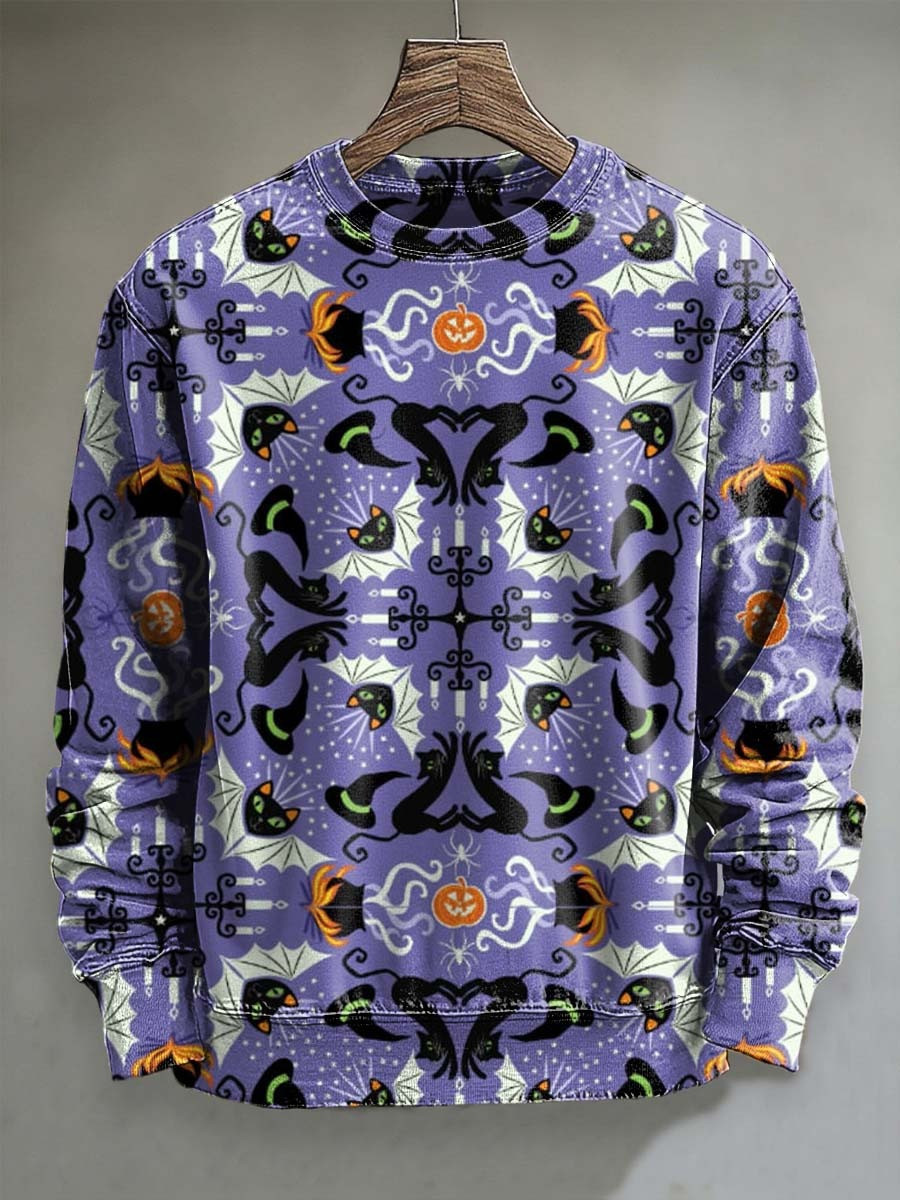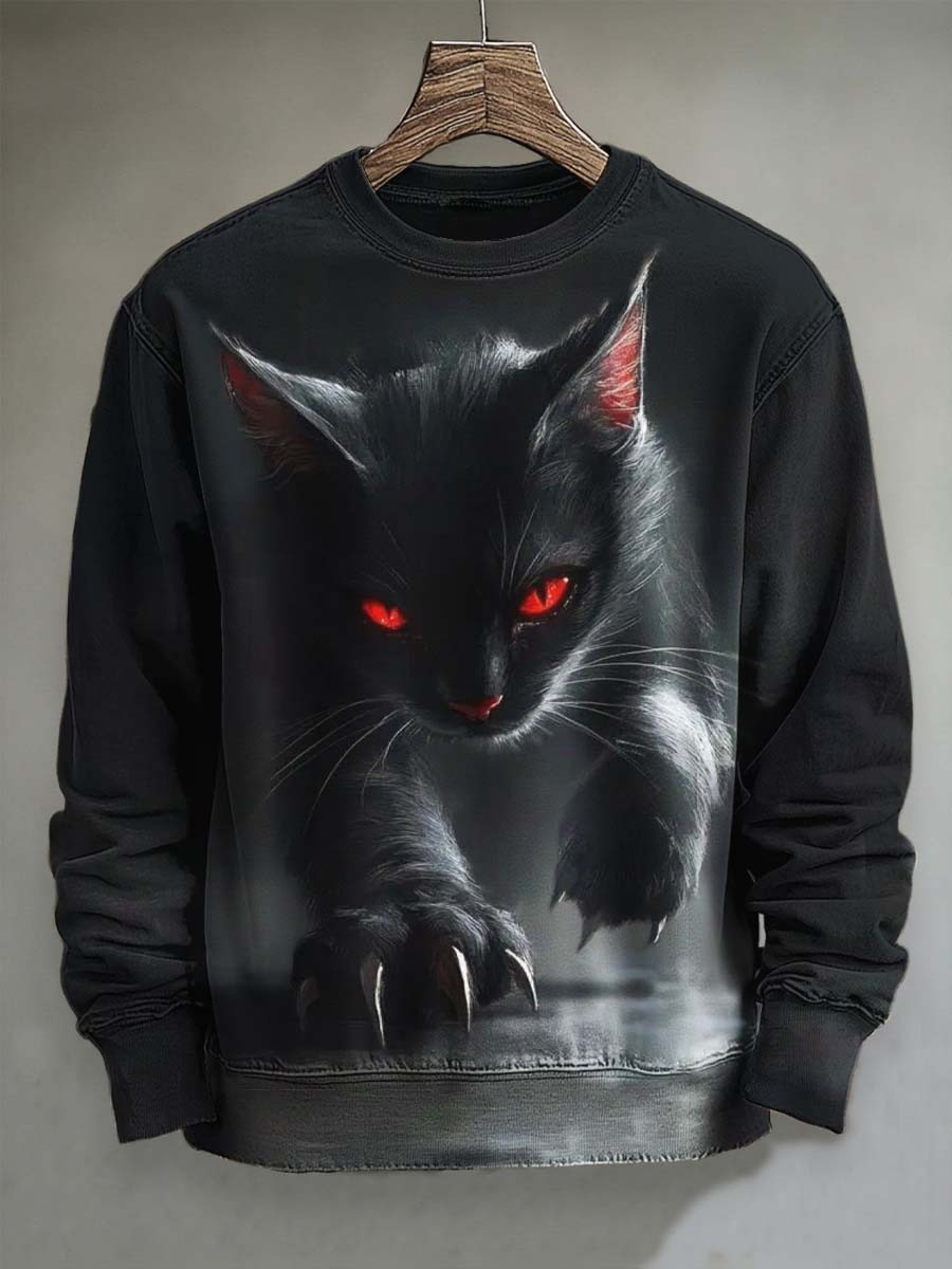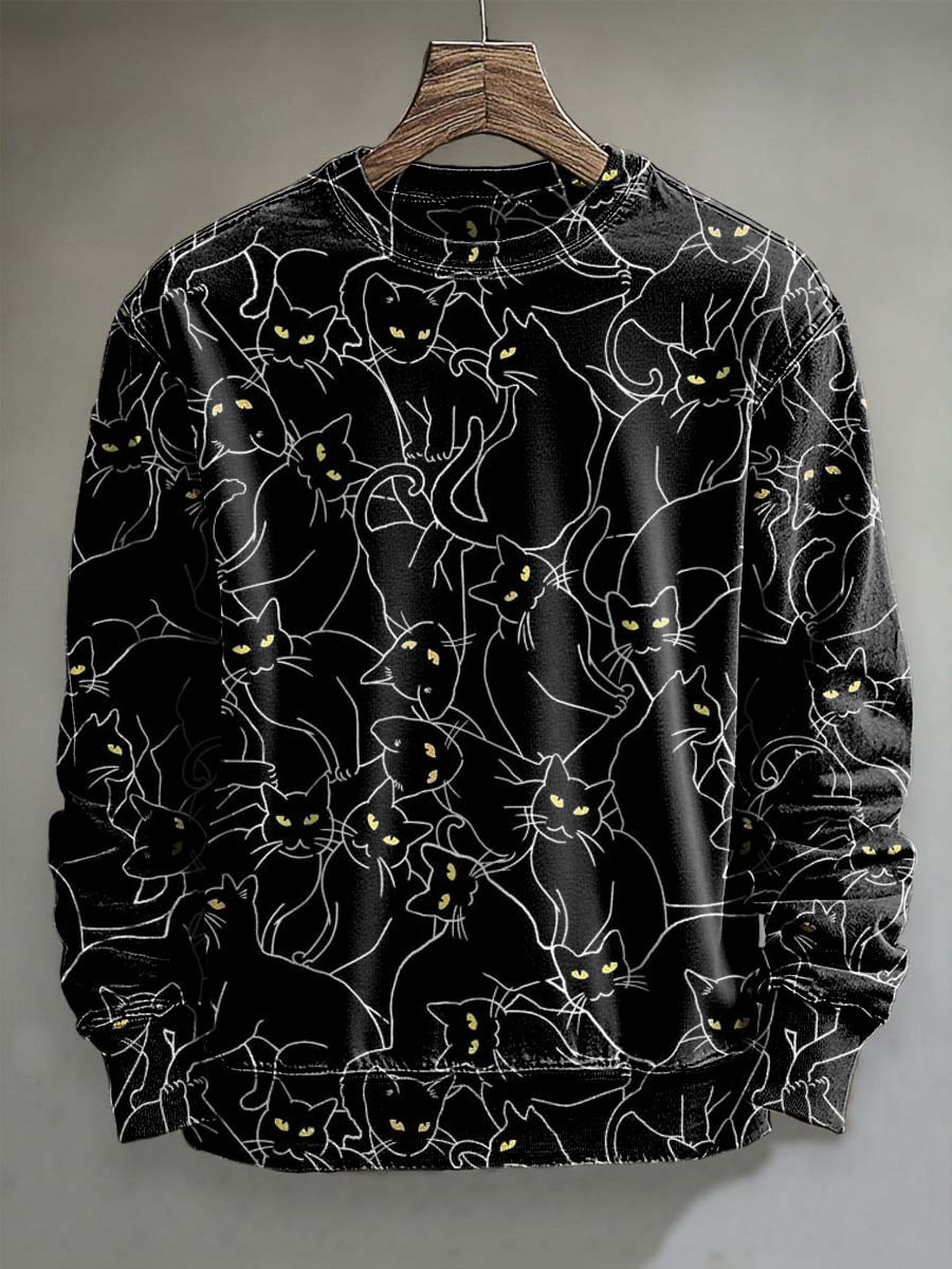 Black Cat Print Halloween Sweatshirt Gothic Apparel Best Xmas Presents For Cat Lovers