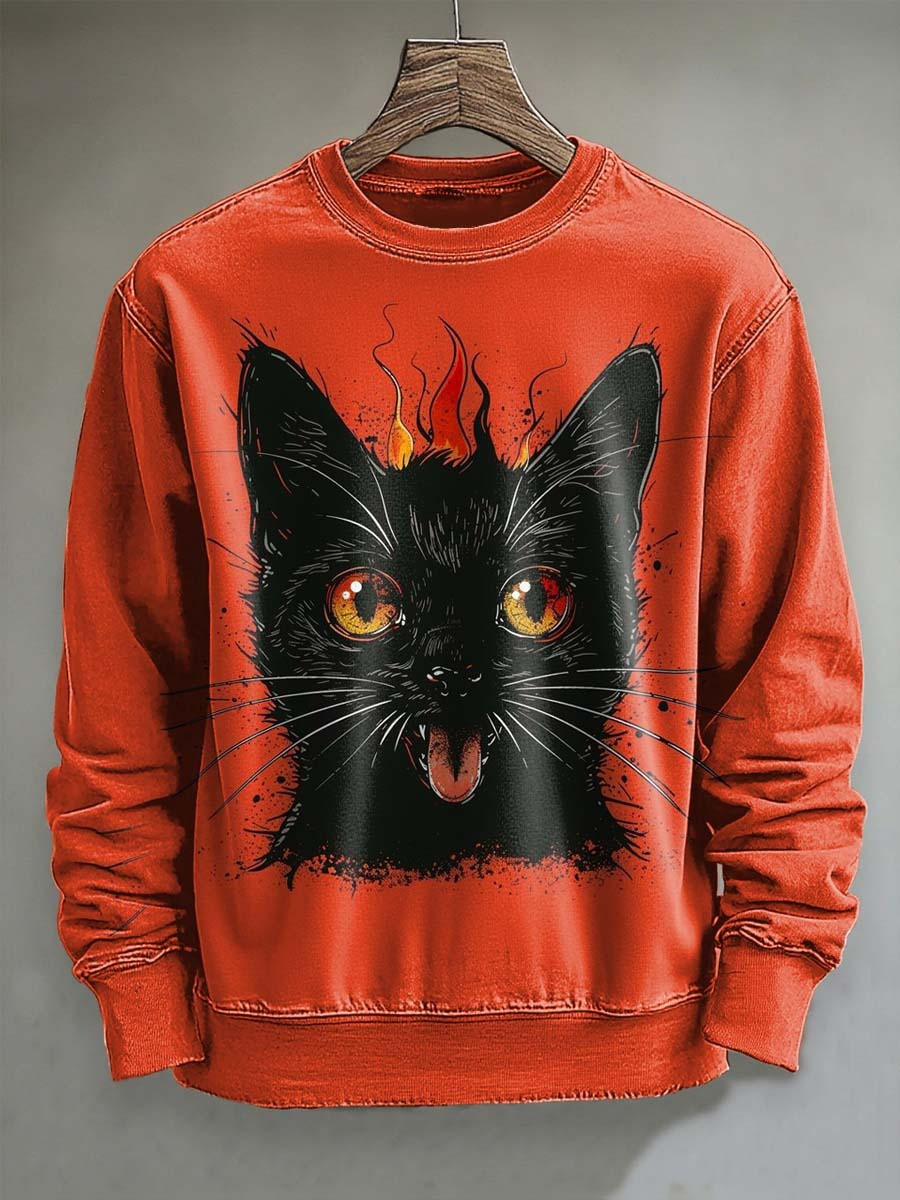 Black Cat Halloween Sweatshirt Funny Burned Cat Clothing Present Ideas For Cat Lovers