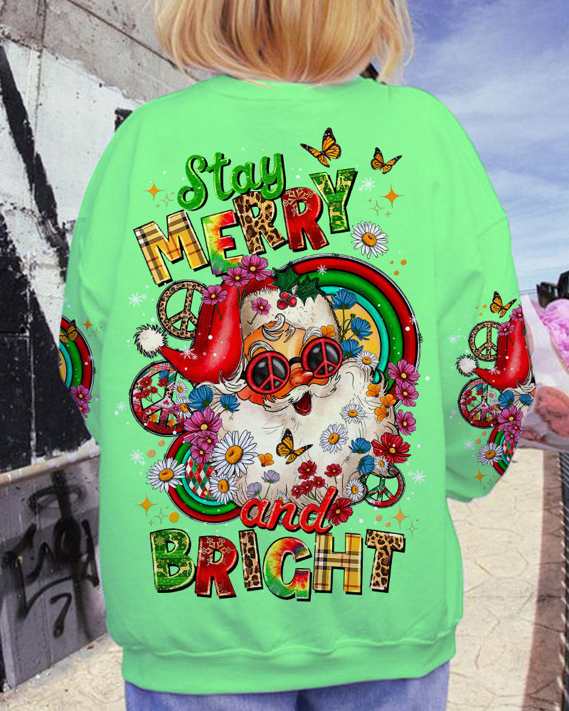 Santa Stay Merry And Bright Sweatshirt Cute Christmas Clothes Gifts For Hippie Girlfriend