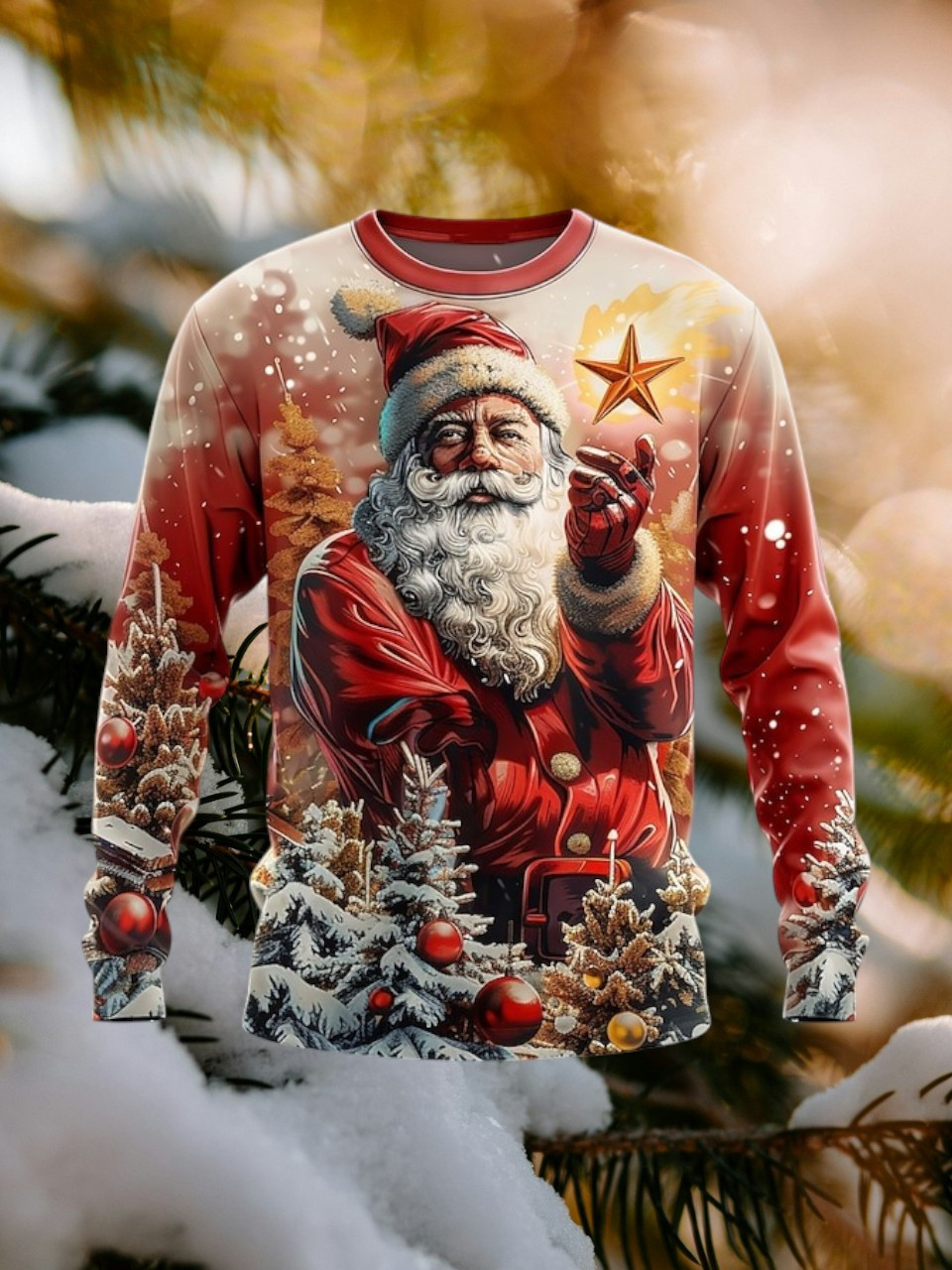 Santa With Star Christmas Holiday Sweatshirt Pine Tree Festival Christmas Gifts For Friends