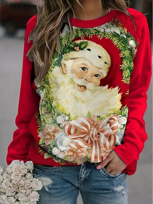 Santa Wreath Bow Christmas Sweatshirt Sweet Christmas Holiday Gifts For Her
