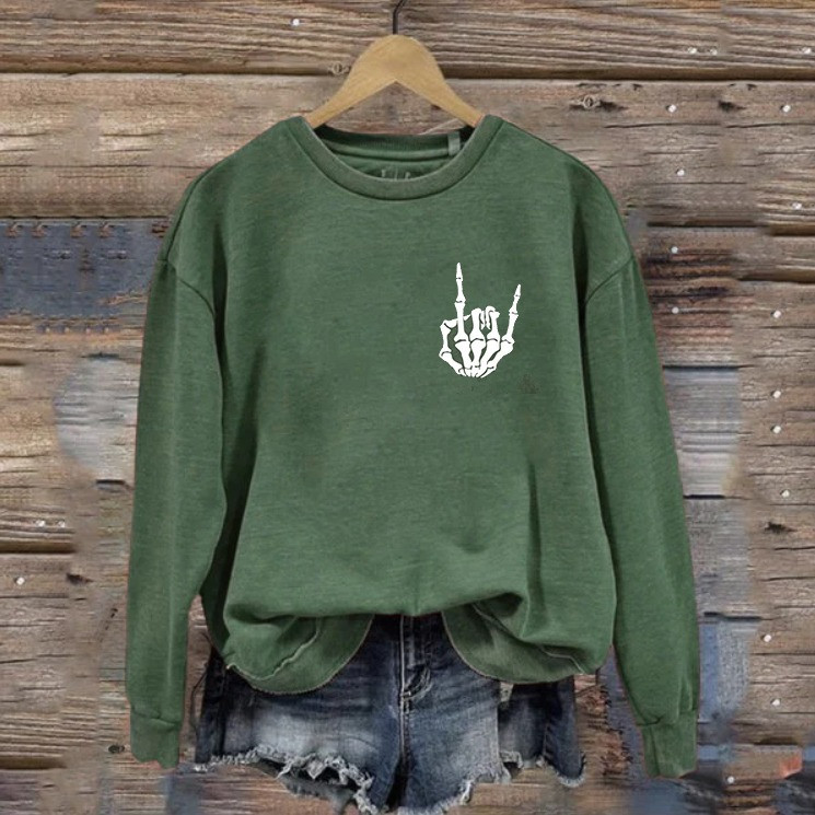 Skeleton Hand Rock On Sweatshirt Funny Clothing Best Xmas Skeleton Themed Gifts