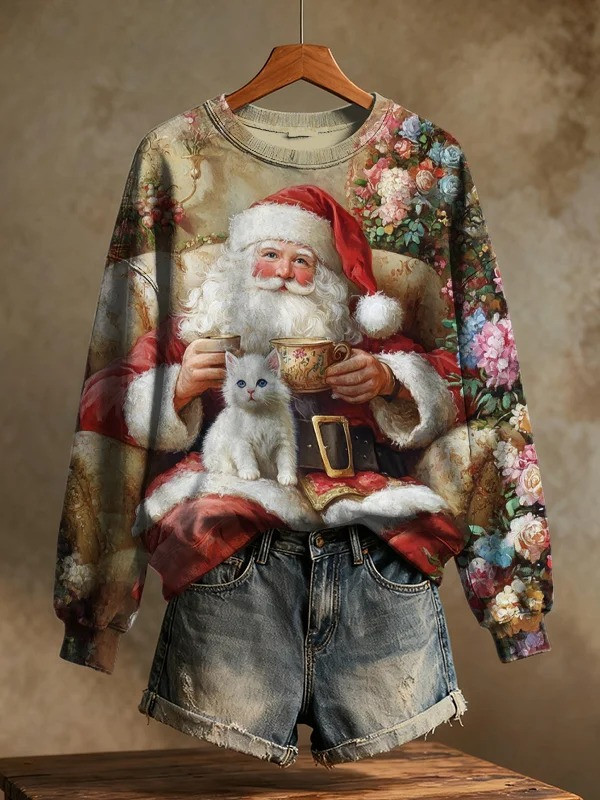 Cat Santa Sits On Sofa Christmas Sweatshirt Cute Holiday Gifts For Cat Lovers