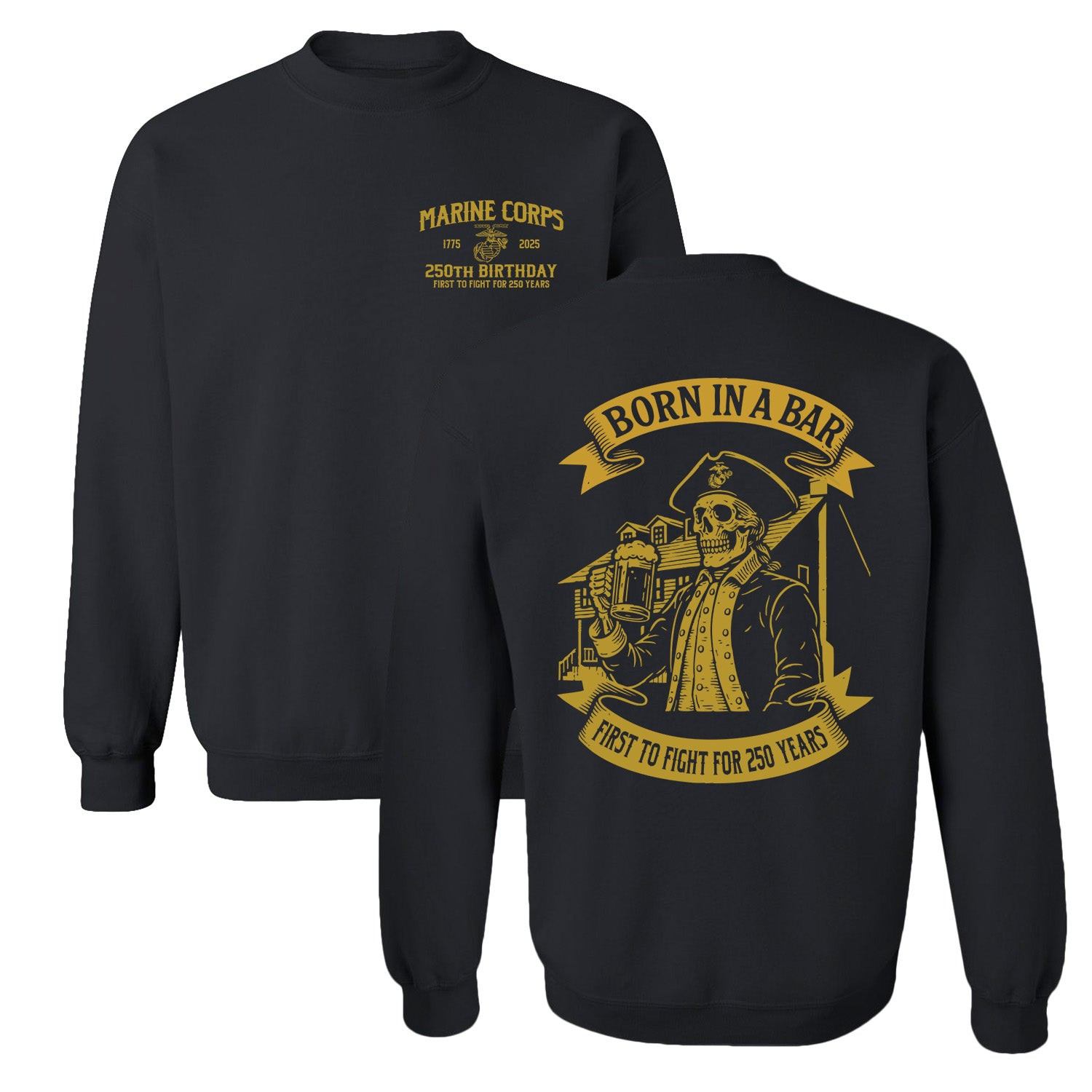 USMC 250th Birthday Sweatshirt Marine Corps Born In A Bar Best Clothes Gift For Him