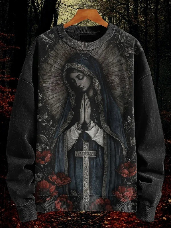 Virgin Mary Christmas Sweatshirt Virgin Mary Floral Cross Faith Christian Clothing Gifts