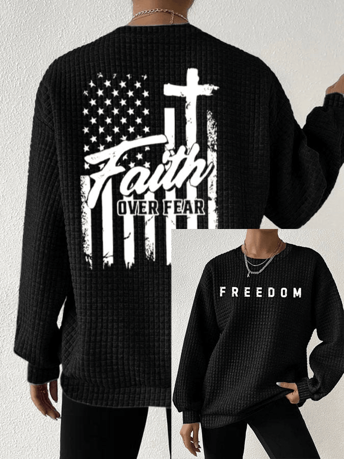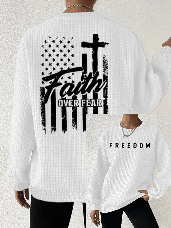 $42.99 – $47.99Price range: $42.99 through $47.99Charlie Kirk Freedom Waffle Sweatshirt Faith Over Fear TPUSA Charlie Kirk Merchandise