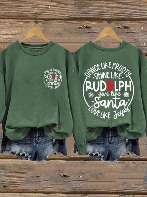 $42.99 – $47.99Price range: $42.99 through $47.99Christmas Quote Sweatshirt Shine Like Rudolph Give Like Santa Love Like Jesus Merch Xmas Gifts