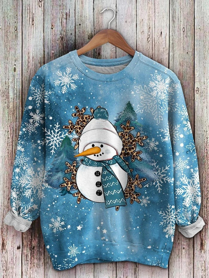 Christmas Snowman Sweatshirt Winter Landscape With Colorful Cute Clothes Xmas Gifts For Her