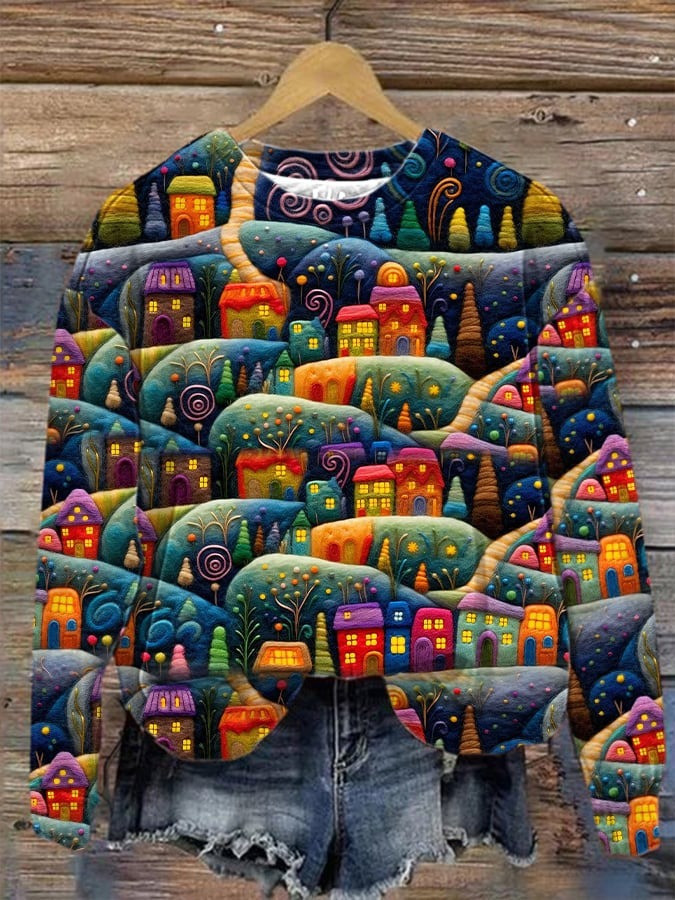 Colorful Fairy Tale Village Christmas Sweatshirt Cute Holiday Village Clothes Gifts For Her