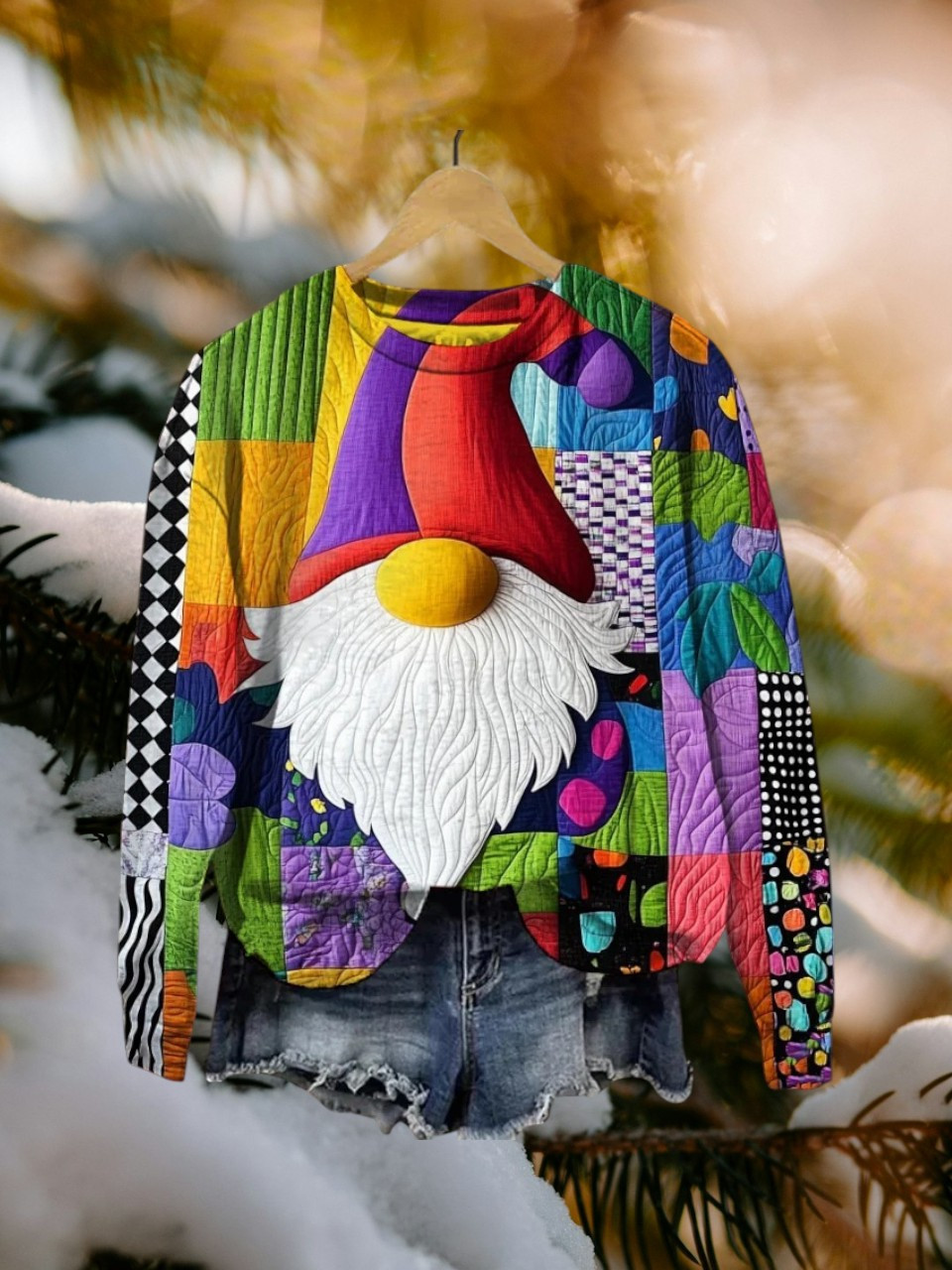 Colorful Patchwork Gnome Christmas Holiday Sweatshirt Winter Xmas Presents For Her