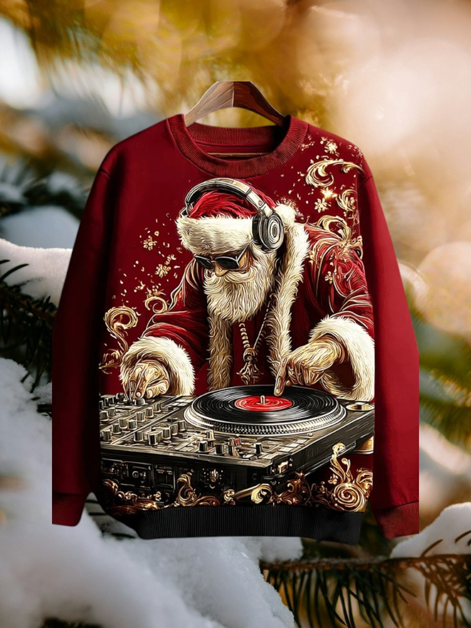 Cool Santa Claus DJ Hiphop Christmas Sweatshirt Funny Clothes Winter DJ Christmas Presents