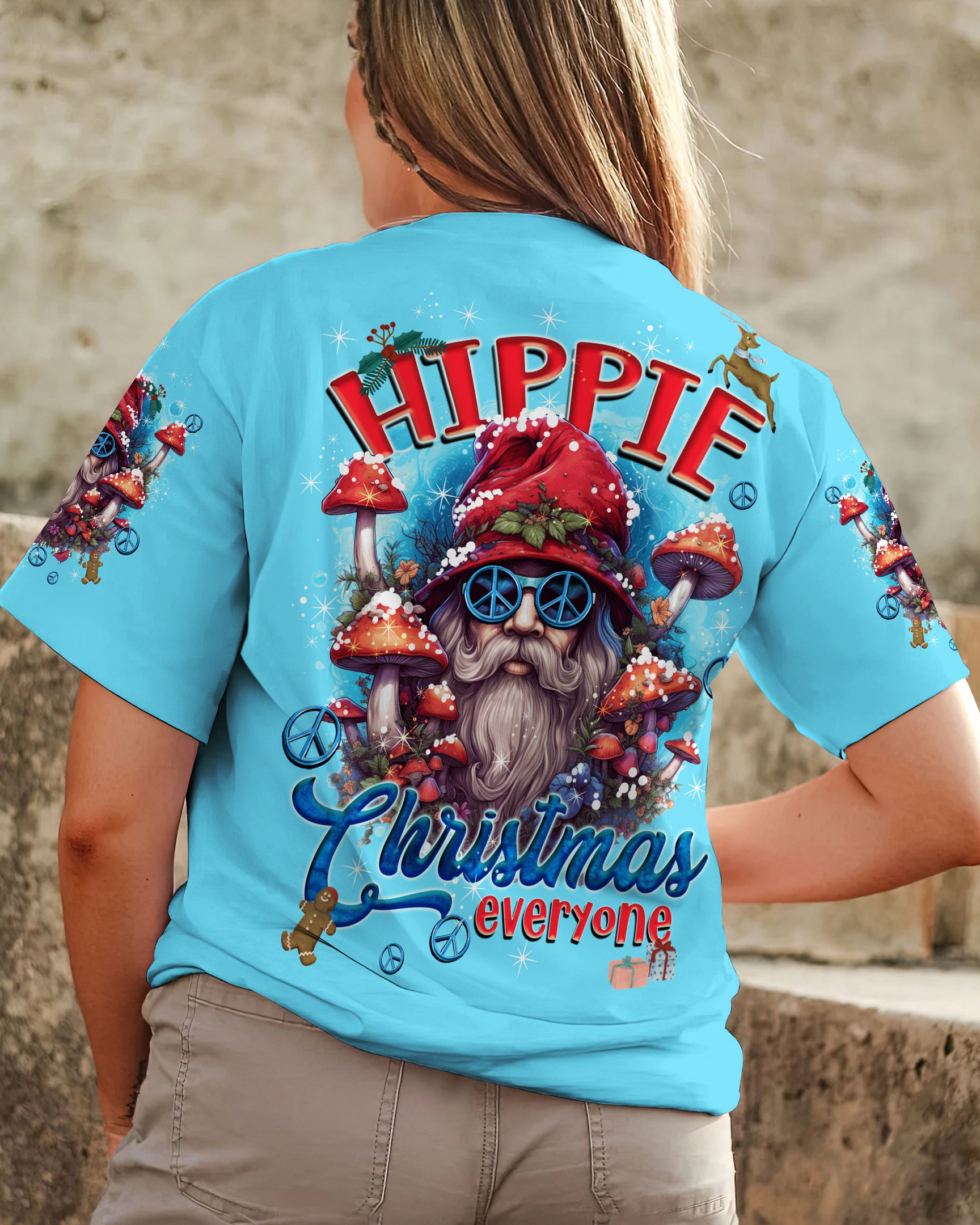 Rushgleam Santa Hippie Christmas T-Shirt Funny Hippie Mushroom Xmas Clothing Gifts For Her