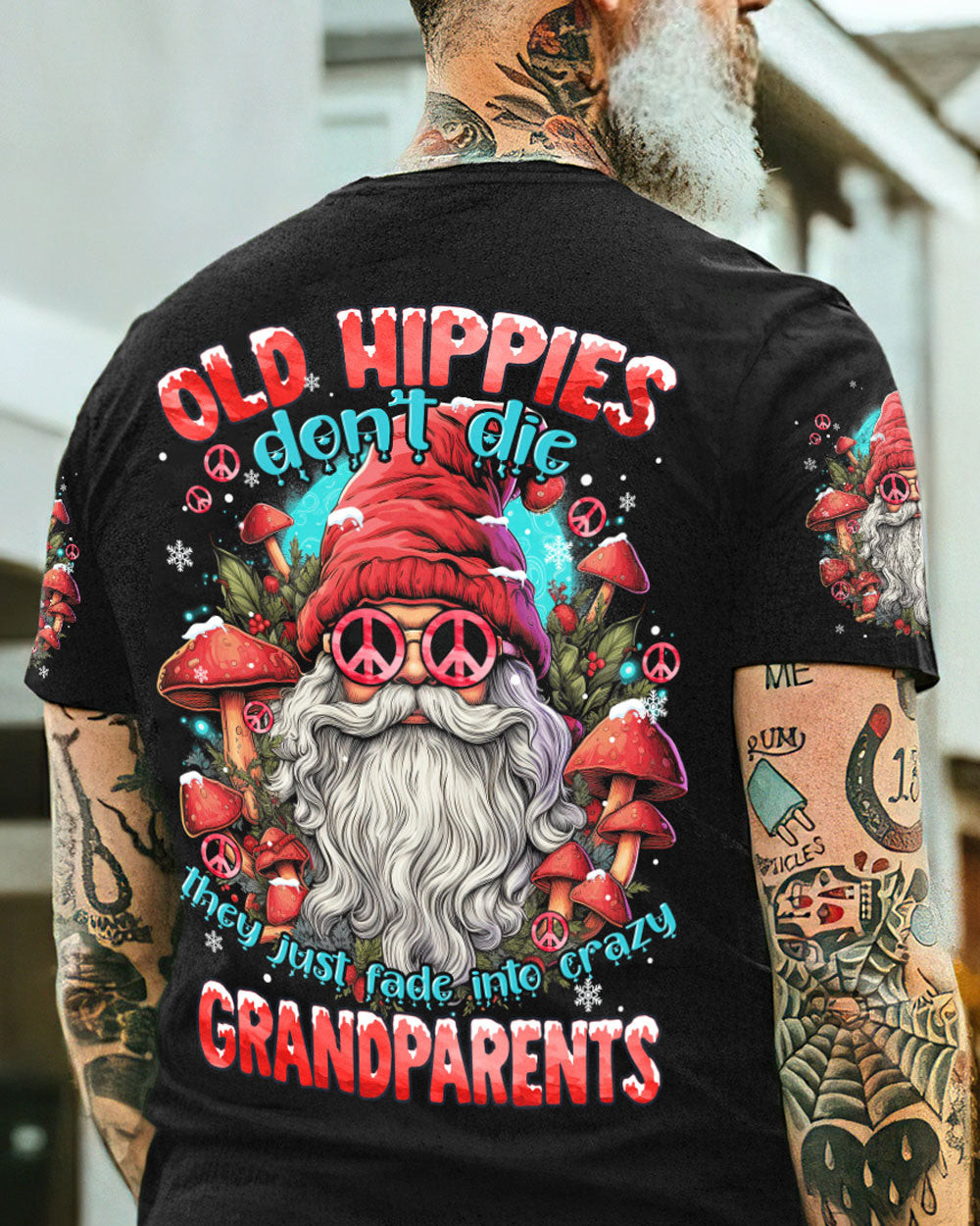Rushgleam Santa Old Hippies Mushroom Christmas T-Shirt Crazy Grandparents Apparel Xmas Gifts