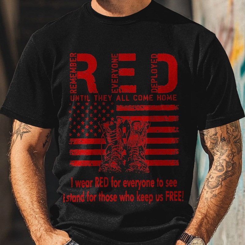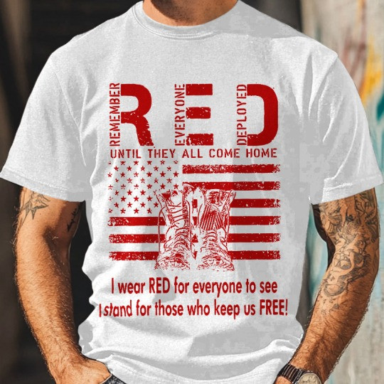 $24.95 – $30.95Price range: $24.95 through $30.95Rushgleam US Veteran T-Shirt RED Remember Everyone Deployed Military Boots Patriotic Gifts Tee