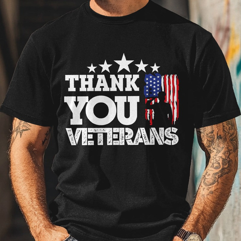 Rushgleam US Veteran T-Shirt Thank You Veterans American Flag Patriotic Gifts Tee For Friends