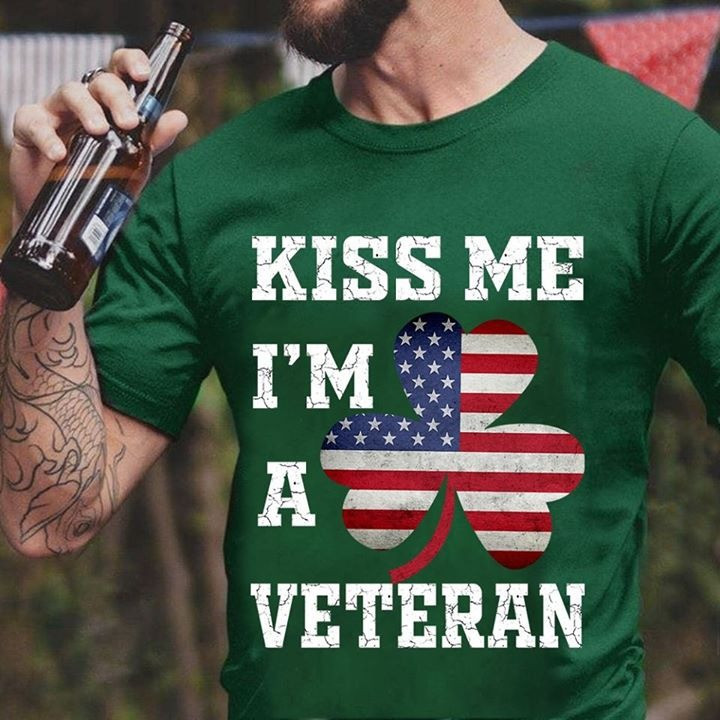 Rushgleam Veteran St Patrick’s Day T-Shirt U.S Kiss Me I’m A Veteran Best Patrick’s Day Gifts For Him
