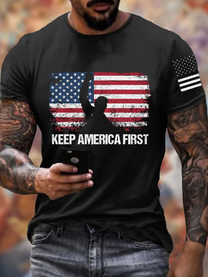 Rushgleam Veteran T-Shirt Keep America First USA Flag Clothing Presents For Patriots