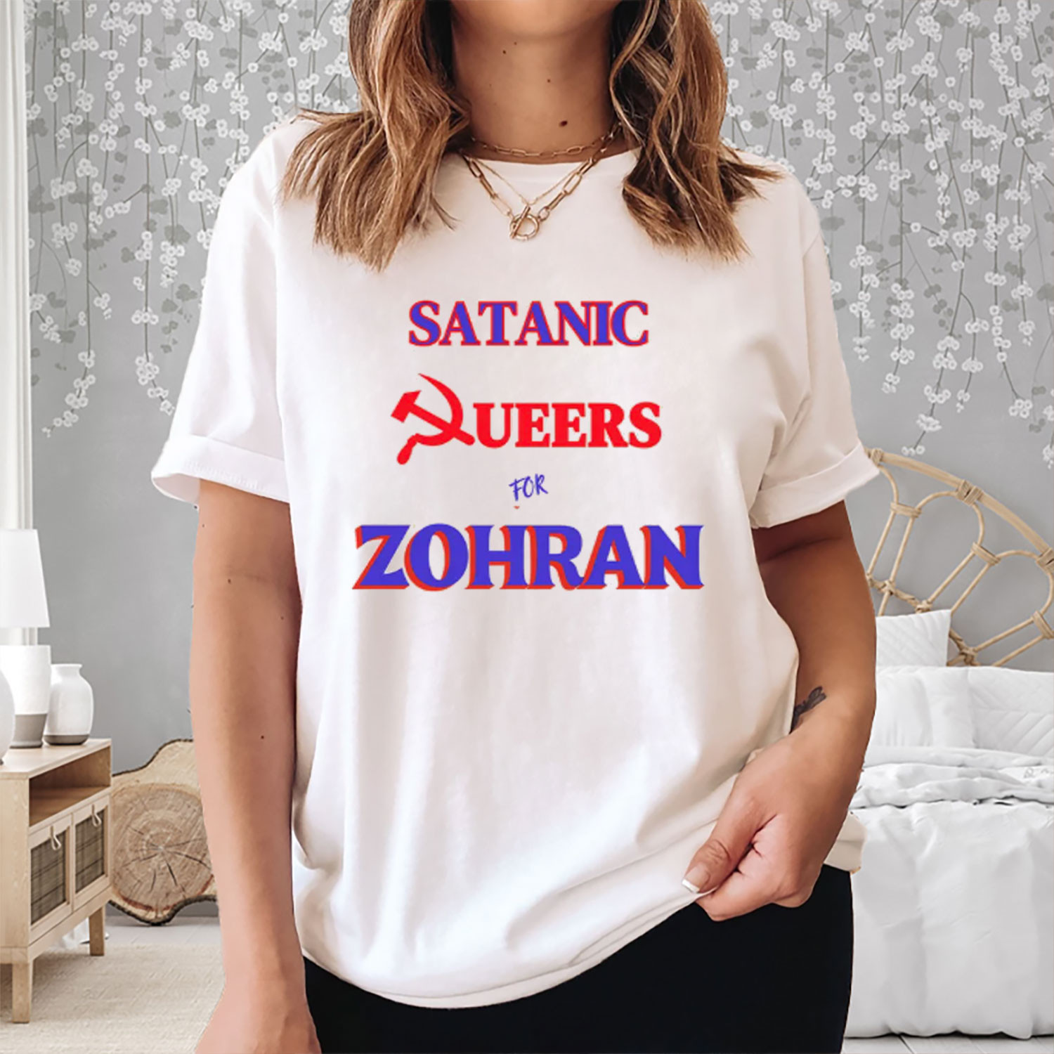 Satanic Queers For Zohran T-Shirt Funny Leftist LGBTQ Political Tee Gifts For Supporters