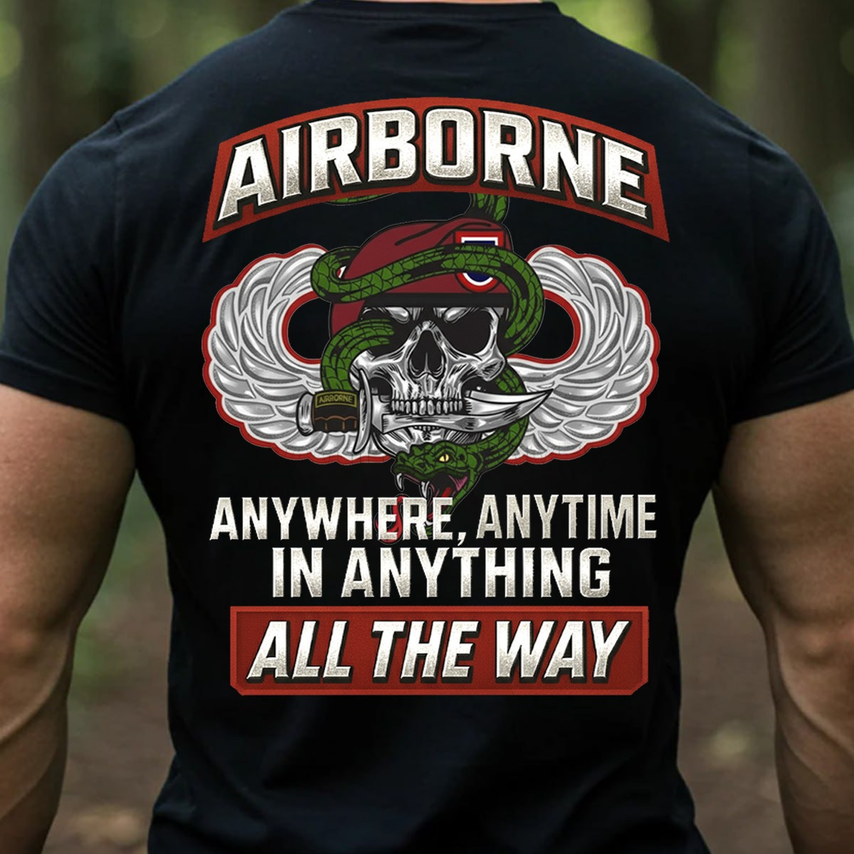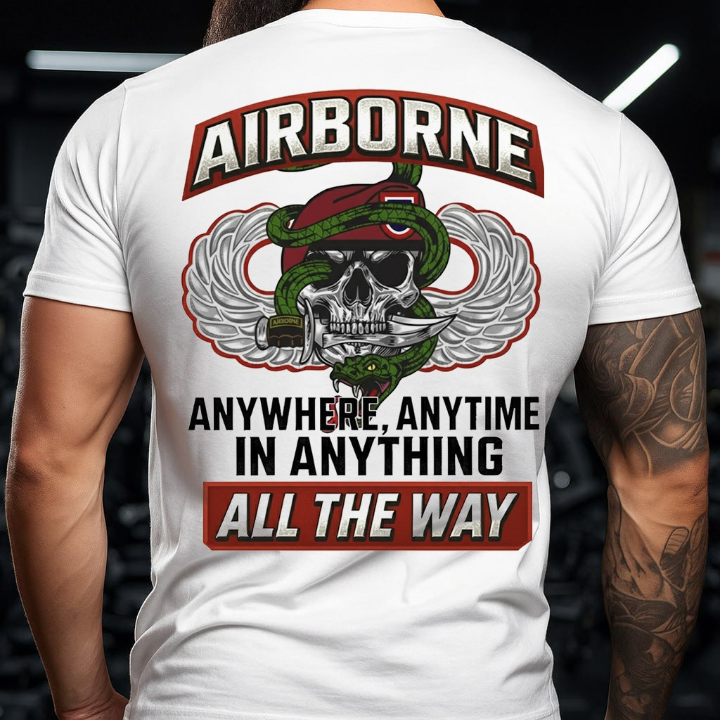 Skull Airborne Veteran T-Shirt Anywhere Anytime All The Way Clothes Presents For Veterans Day