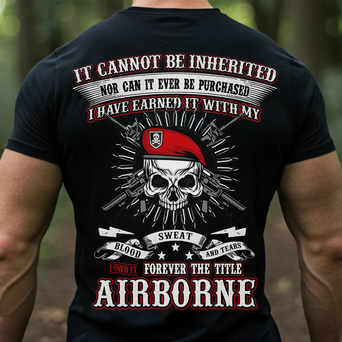 Skull Airborne Veteran T-Shirt Blood Sweat And Tears Forever The Title Military Clothes Gifts