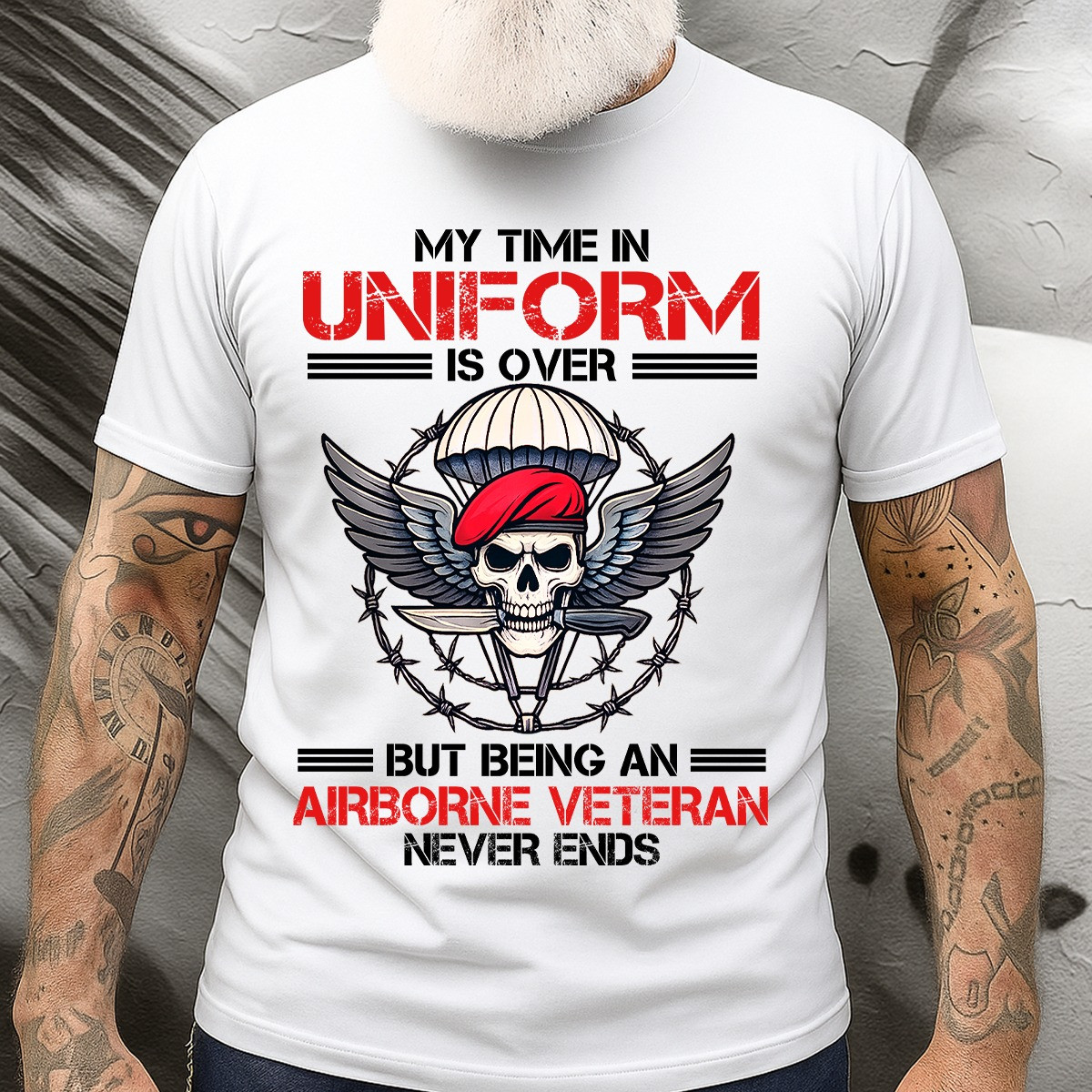 $29.99 – $35.99Price range: $29.99 through $35.99Skull Airborne Veteran T-Shirt My Time In Uniform Proud Airborne Tee Military Presents