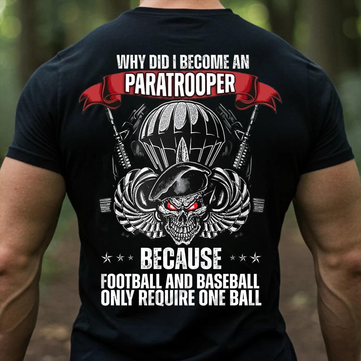 Skull Airborne Veteran T-Shirt Why Did I Become A Paratrooper Style For US Airborne Military