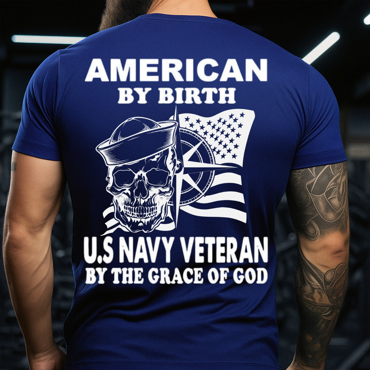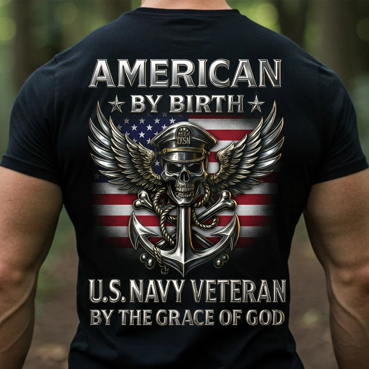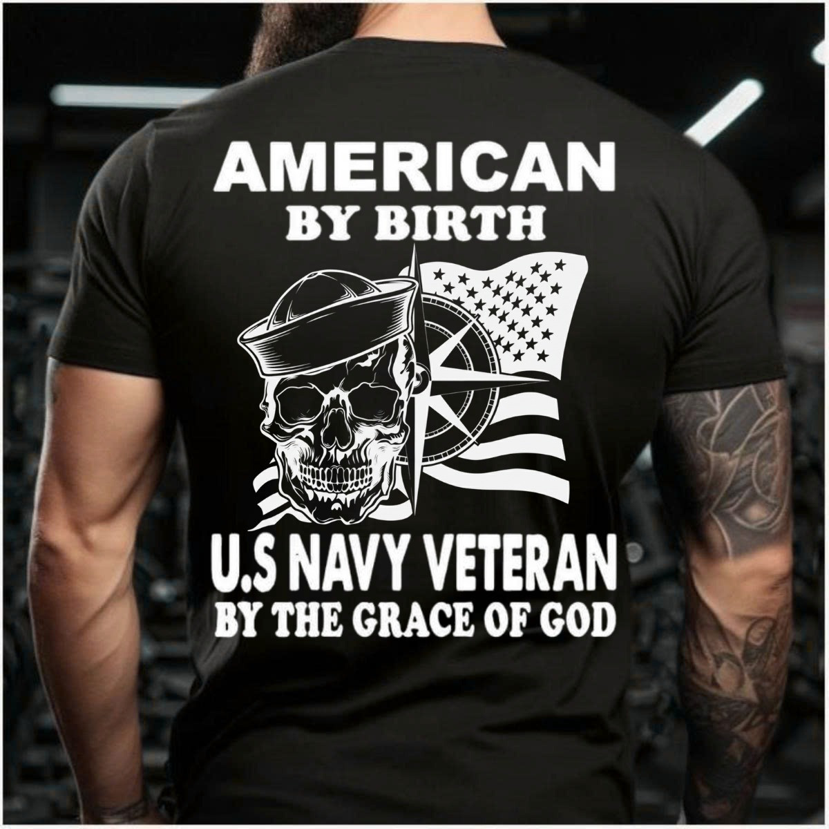Skull Anchor America Flag USN Veteran T-Shirt American By Birth Merch Gift For Veterans Day