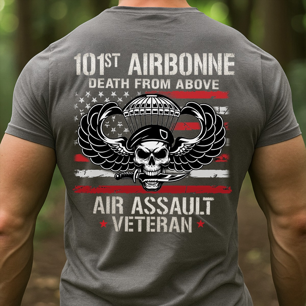 $29.99 – $35.99Price range: $29.99 through $35.99Skull American Flag 101st Airborne T-Shirt Air Assault Veteran Military Tee For Patriots