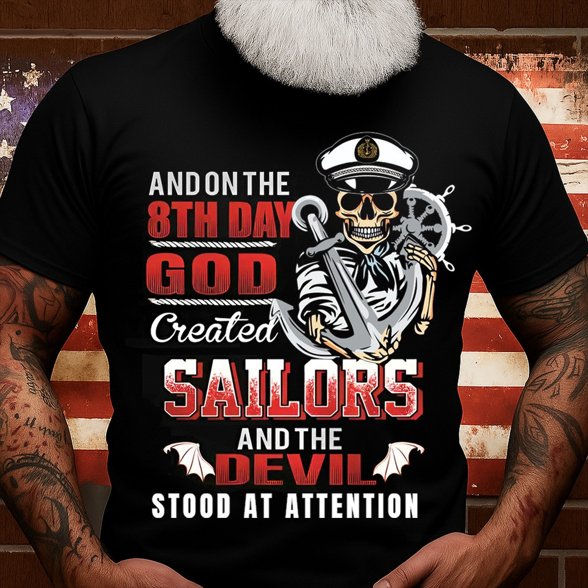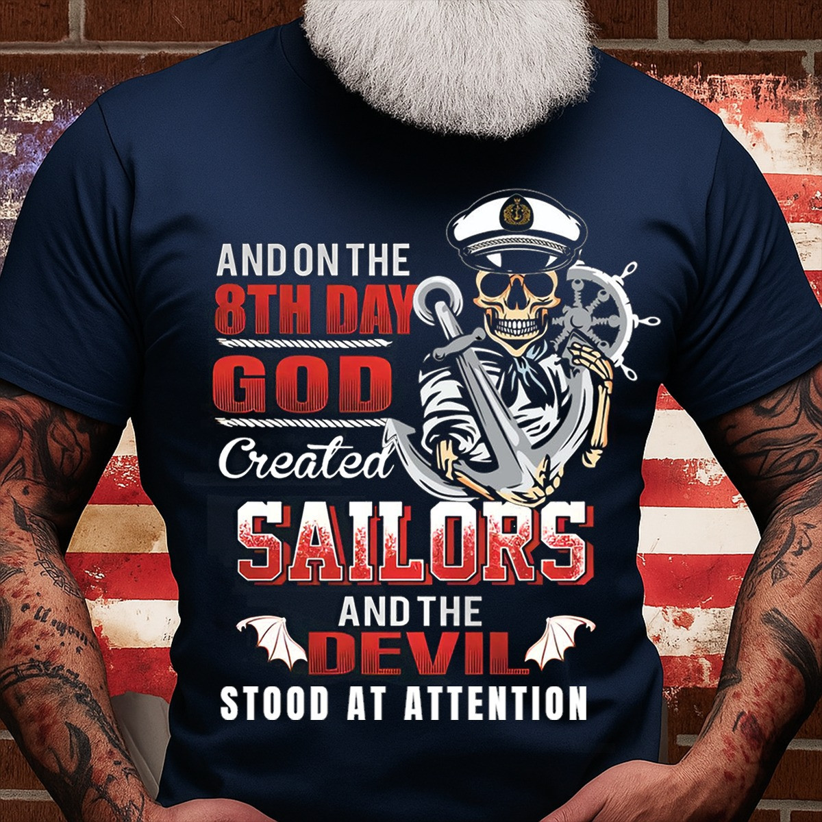 $29.99 – $35.99Price range: $29.99 through $35.99Skull Anchor Navy Sailor Veteran T-Shirt On the 8th Day God Stood At Attention Shirt For Men