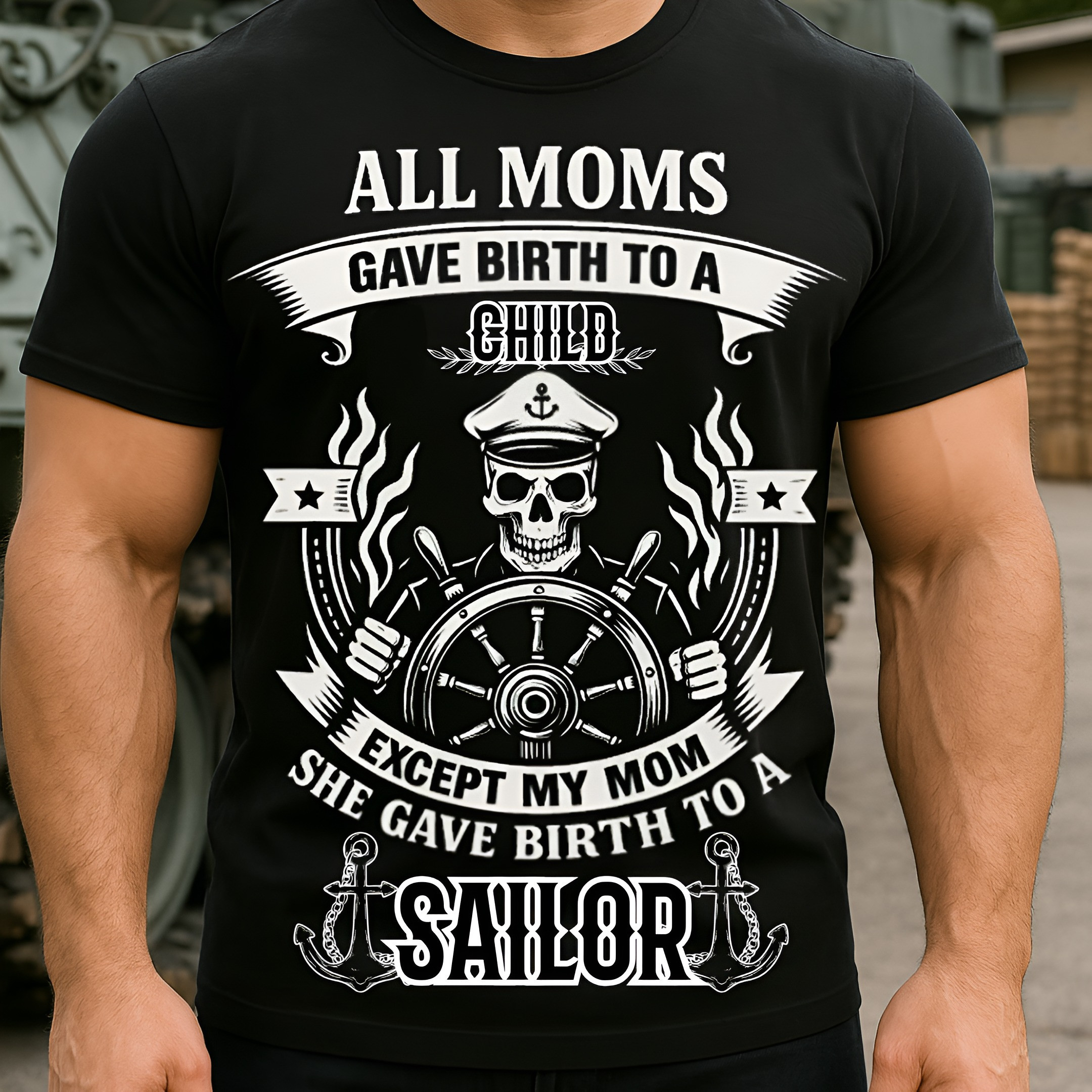 Skull And Ship Wheel Navy Sailor Shirt All Moms Gave Birth To A Child Funny Military Gift Tee