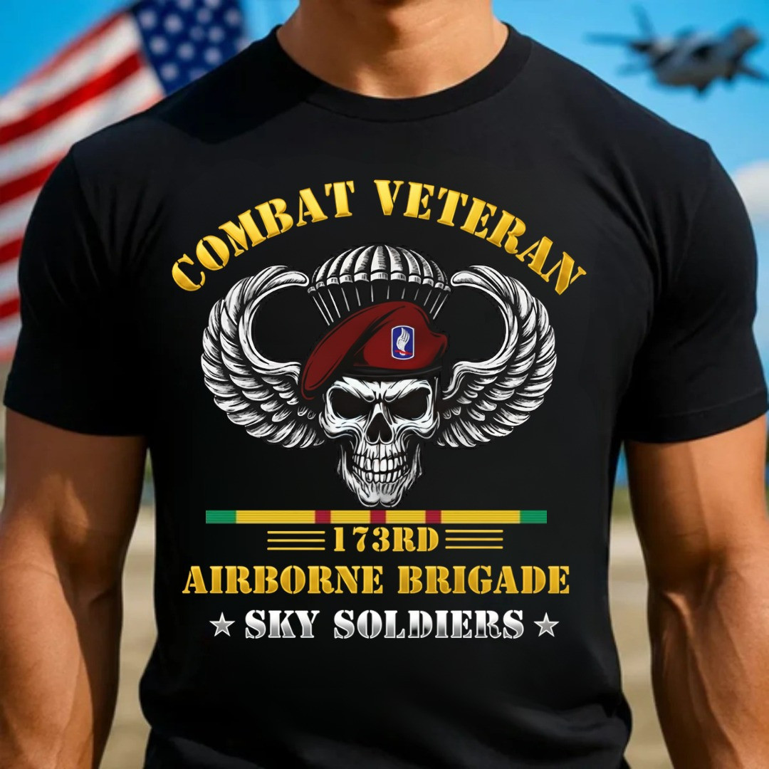 $29.99 – $35.99Price range: $29.99 through $35.99Skull Combat Veteran T-Shirt 173rd Airborne Brigade Sky Soldier Apparel Gifts For Patriots