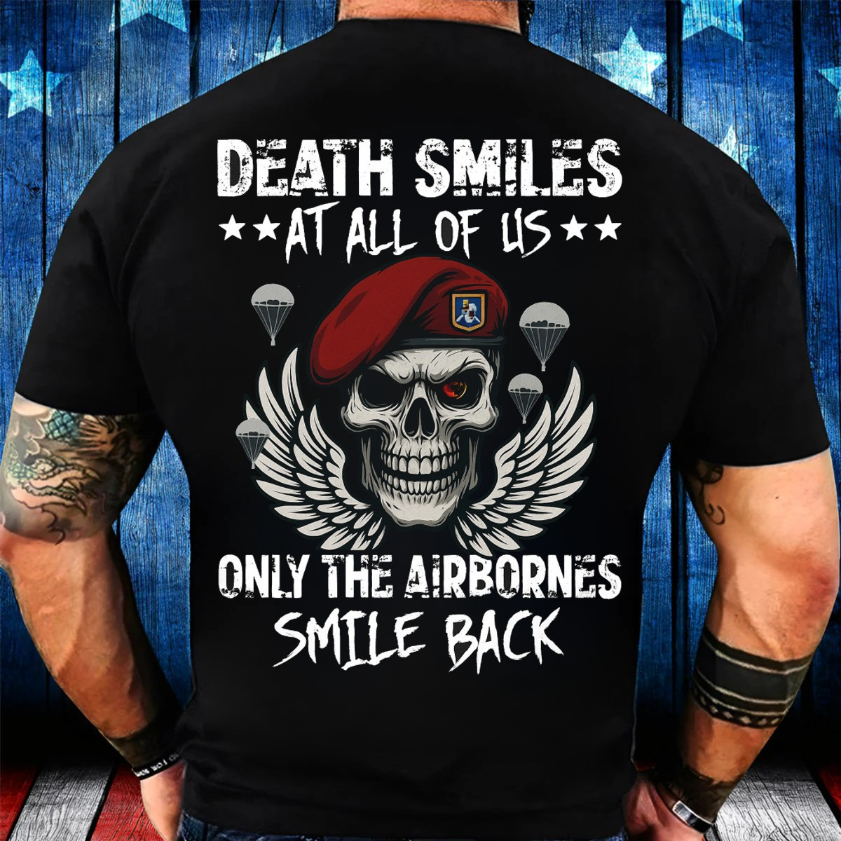 $29.99 – $35.99Price range: $29.99 through $35.99Skull US Airborne Veteran Shirt Death Smiles Only The Airbornes Military Tee Perfect Gift Ideas