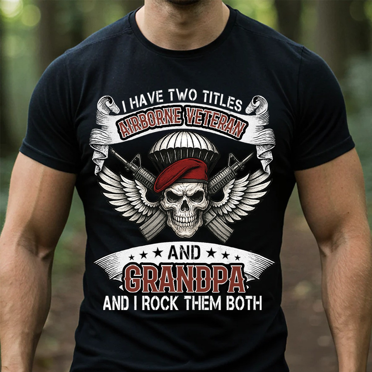 Skull Wings With Guns Veteran T-Shirt Airborne Veteran And Grandpa Proud Army Gifts For Dad