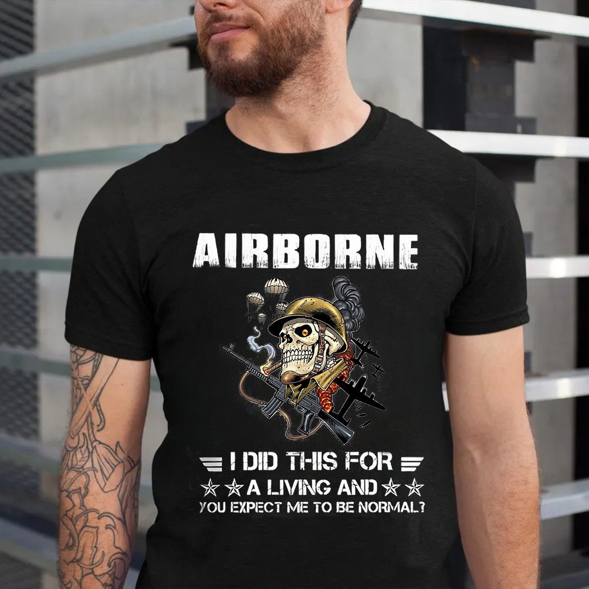 Skull With Gun Airborne Military T-Shirt I Did This For A Living And Patriotic Apparel Gifts
