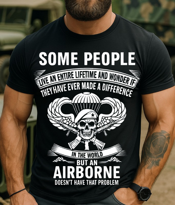 Skull With Guns Airborne Veteran T-Shirt Some People Military Clothing Gifts For US Army