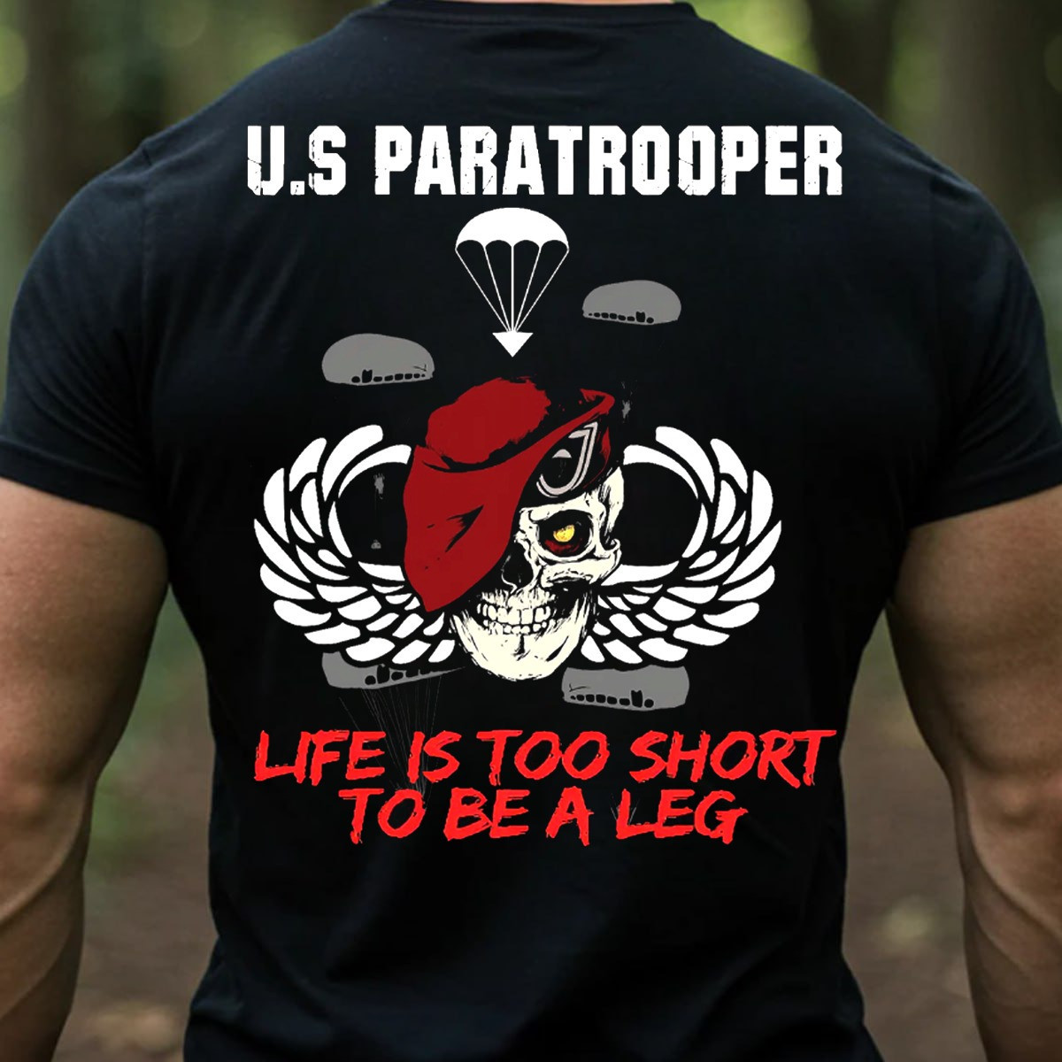 Skull With Red Hat Us Paratrooper T-Shirt Life Is Too Short To Be A Leg Gifts For Veterans