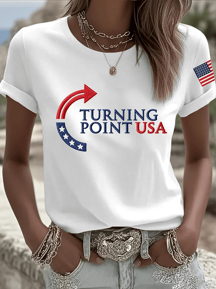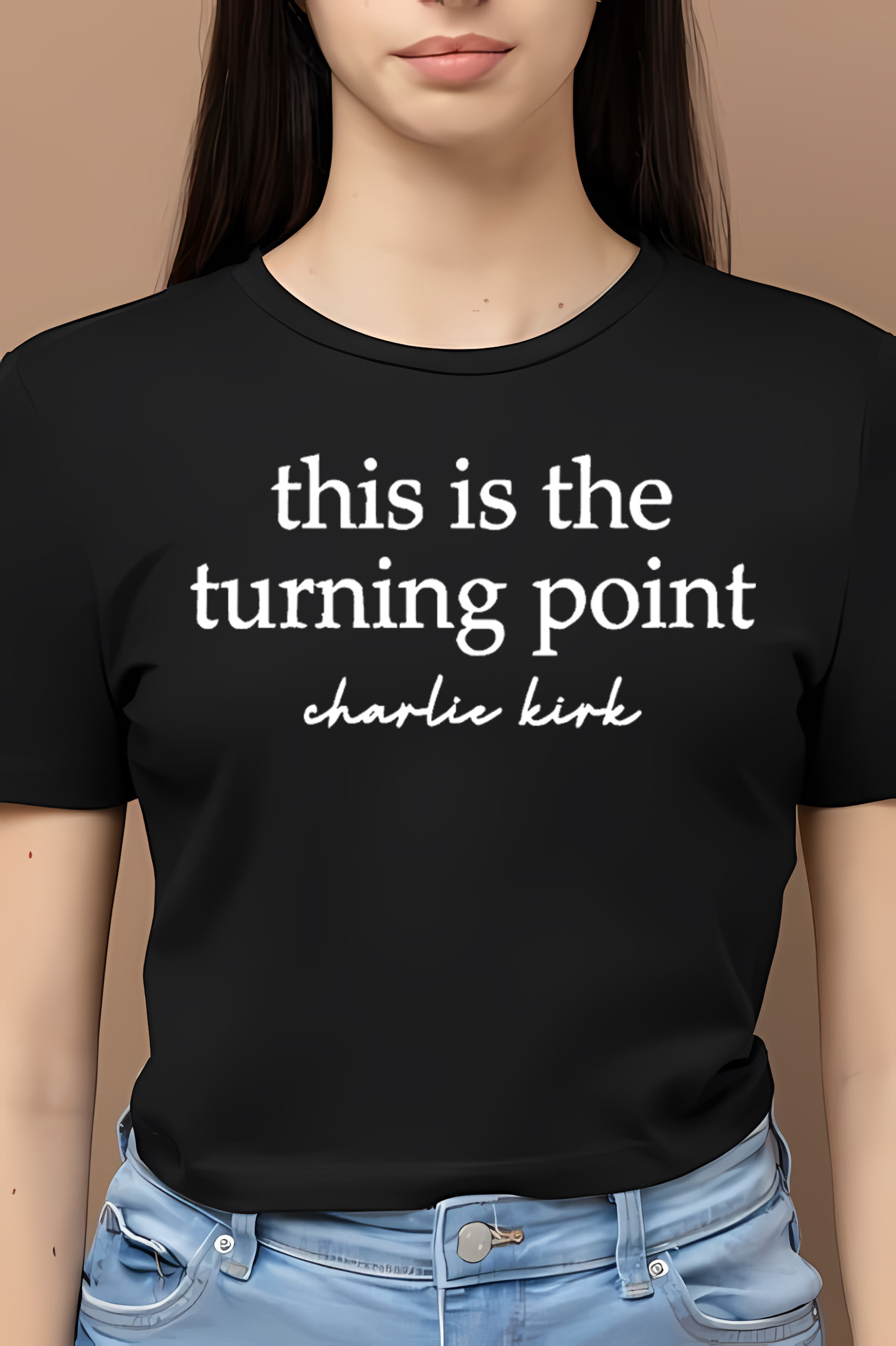 This Is The Turning Point Print Round Neck T-Shirt Charlie Kirk Merch