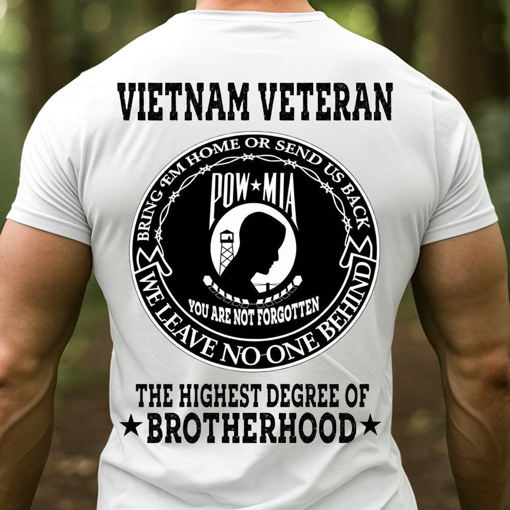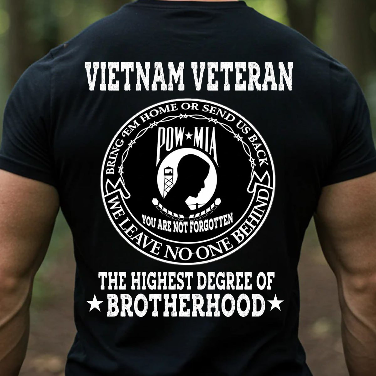 $29.99 – $35.99Price range: $29.99 through $35.99Vietnam Veteran T-Shirt POW MIA You Are Not Forgotten Brotherhood Shirt Gifts For Veterans Day