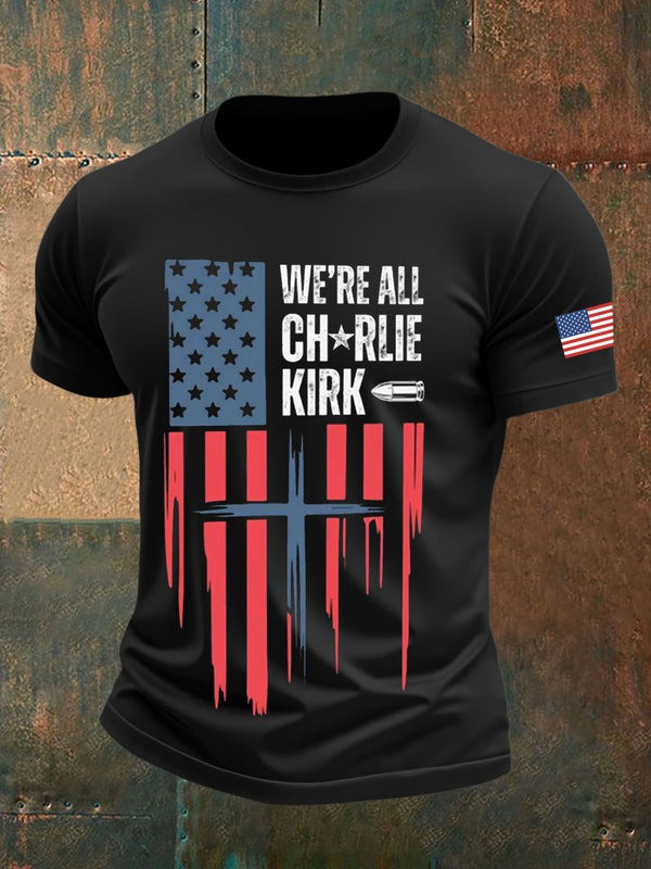We’re All Charlie Kirk T-Shirt American Flag Cross Christian Merch Gifts